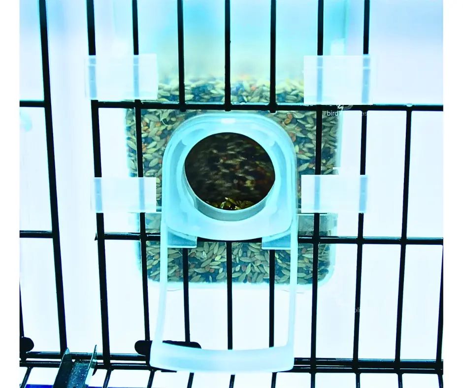 Praktické upevnění: Krmítko lze připevnit jak dovnitř, tak i na vnější stranu klece vašeho papouška. Varianta s vnitřním upevněním zajišťuje stabilitu a pohodlí, zatímco bez vnitřního upevnění lze krmítko připevnit pouze na vnější stranu klece.