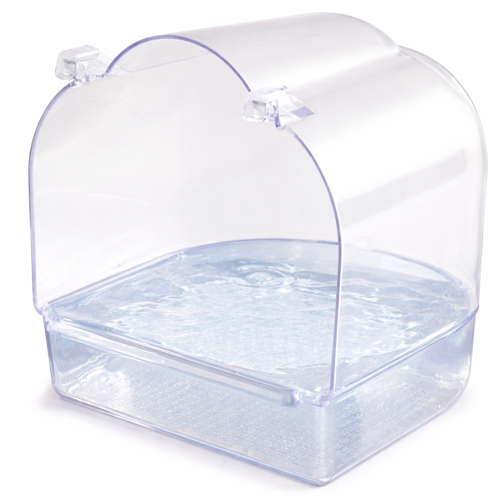 Hygienické a snadné čištění: Bazén se snadno udržuje v čistotě. Je vyroben z vysoce kvalitního akrylu, který se snadno čistí a dezinfikuje, a zajišťuje tak hygienické podmínky pro vašeho ptáka. Díky snadné údržbě v čistotě pečujete o zdraví a pohodu svého ptáka.