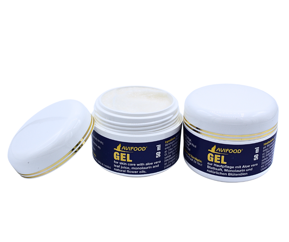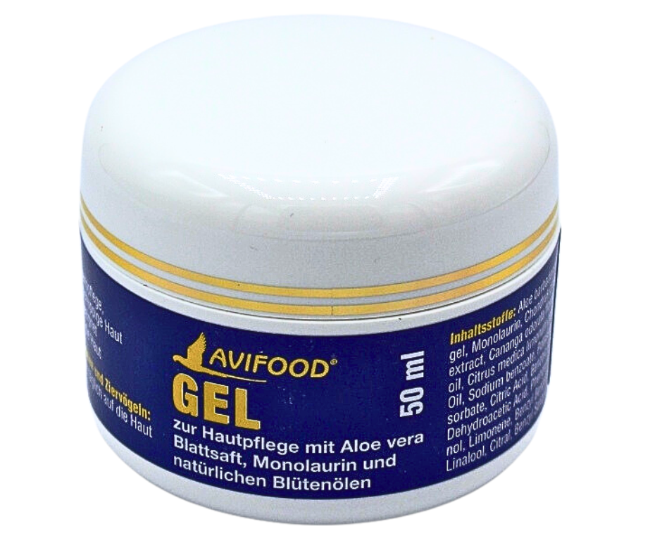 Avifood Gel 50 ml – gel pro péči o kůži papoušků s výtažkem z listů aloe vera a přírodními oleji | Hydratační péče
