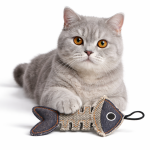 - Hračka má tvar rybího skeletu, což navíc přitahuje pozornost kočky a vybízí ji ke hře.