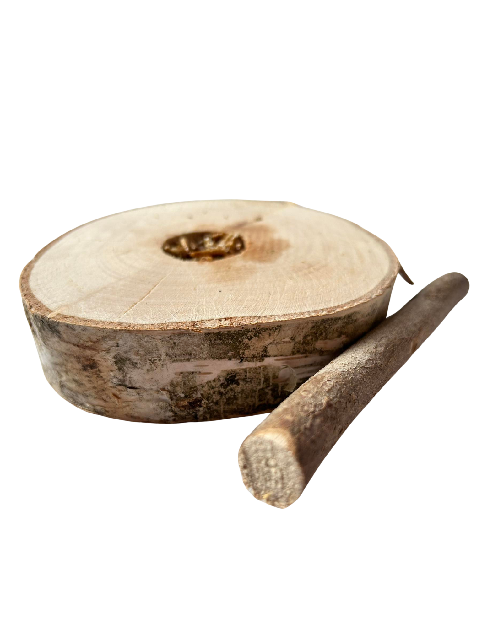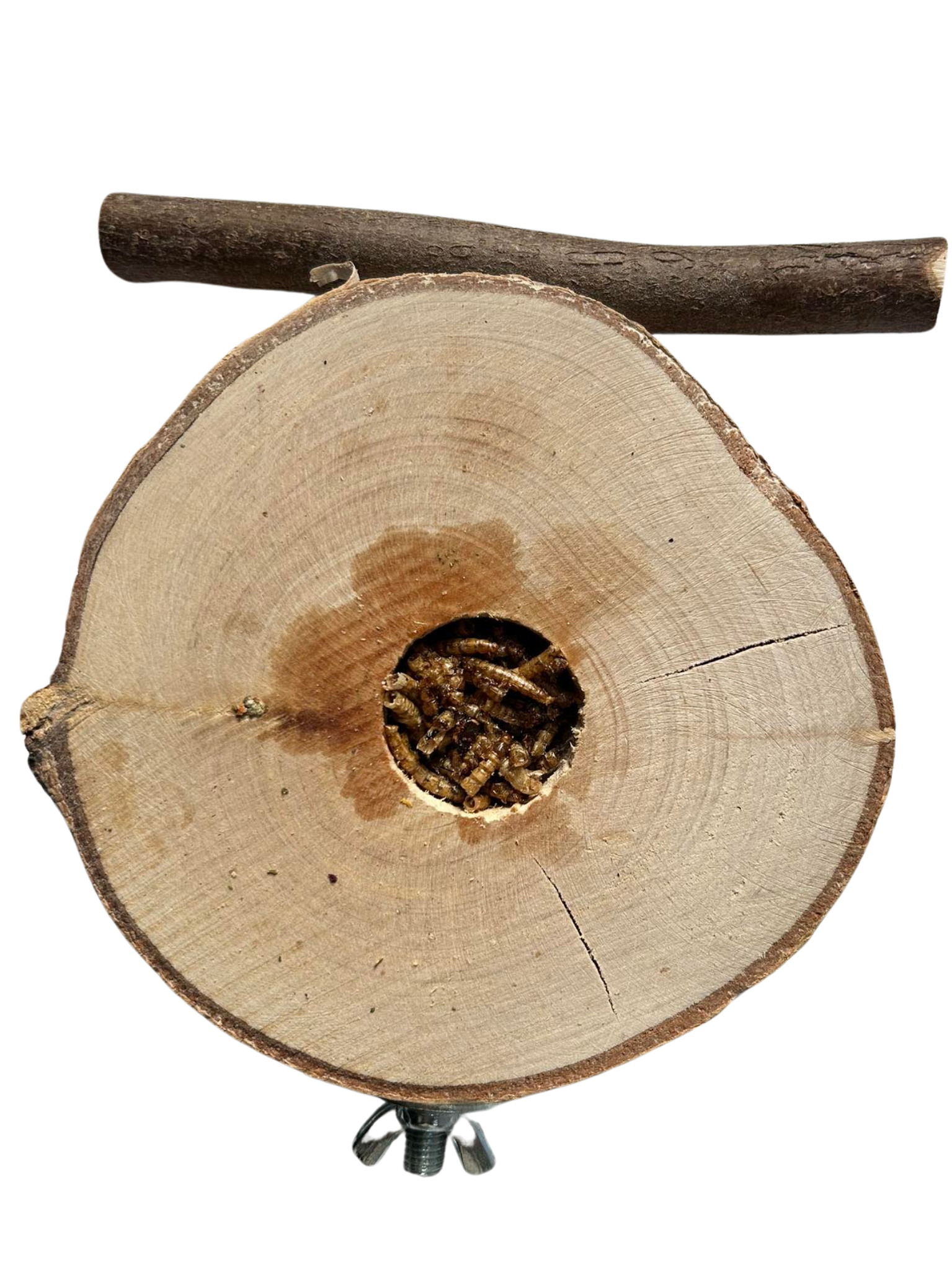 Březový stolek s larvami moučky – pro malé a střední papoušky