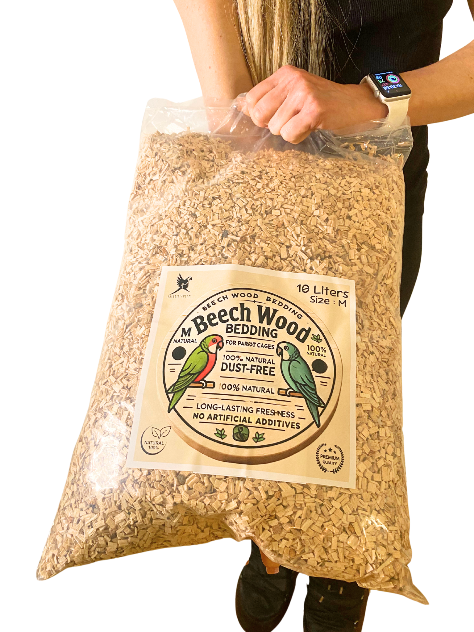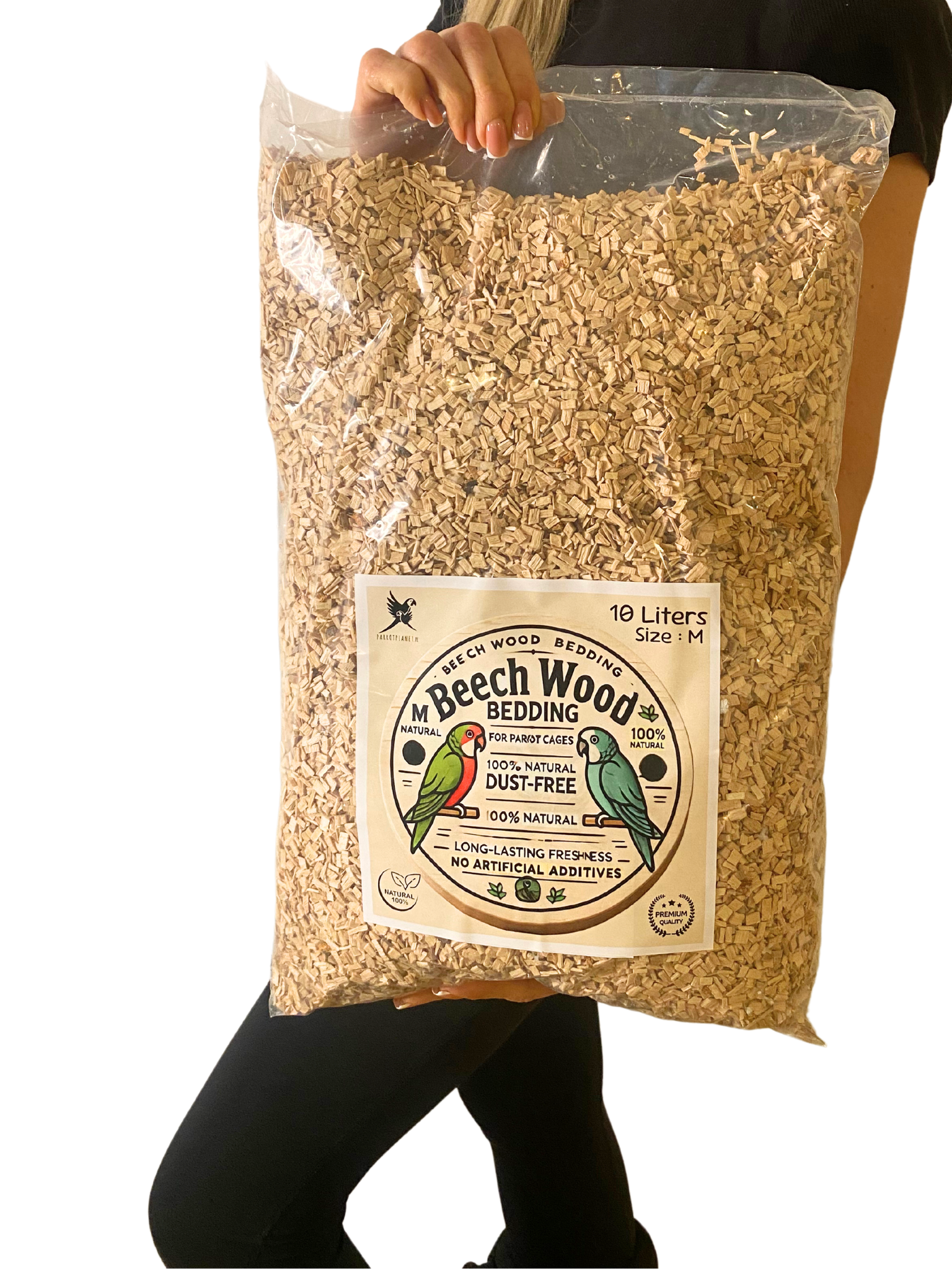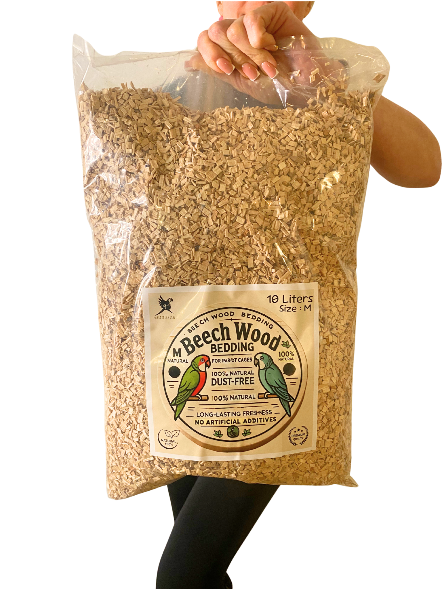 Bukové štěpky pro papoušky, velikost M – přírodní a hygienický podestýlka do klecí 10 l