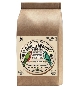 - Přírodní bukové dřevo – bez chemických přísad, zcela bezpečné pro papoušky