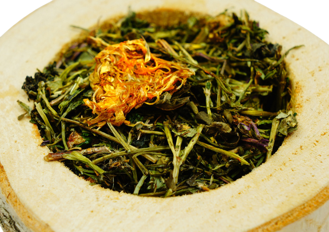 list jahody, květ měsíčku, pampeliška, kopřiva, máta, petržel, škrob