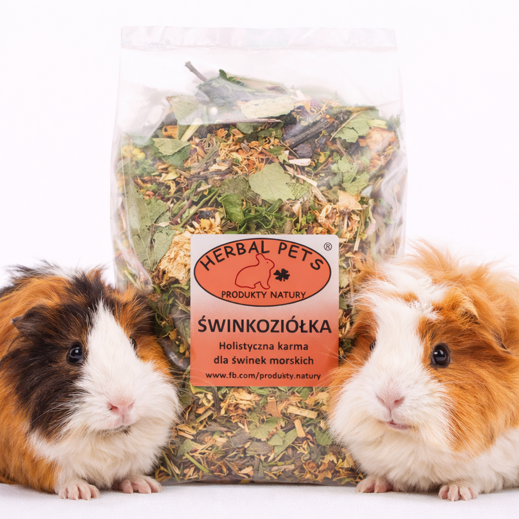 Świnkoziółka je jedinečná směs bylin s přídavkem ovoce, vyvinutá s ohledem na každodenní podporu zdraví a imunity morčat. Bohatství až 30 pečlivě vybraných složek podporuje metabolismus, chrání játra a močový systém vašeho mazlíčka. Vysoký obsah vitamínu C je klíčový pro zdraví morčat, která si jej sama nedokáže syntetizovat. Rozmanitá struktura bylin, stonků a větviček zajišťuje přirozené obrušování neustále rostoucích zubů.