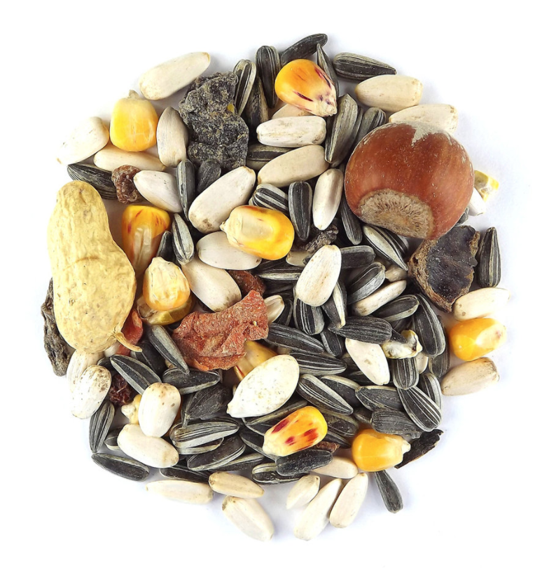 Složení: vysoce energetická zrna a ořechy v různých poměrech.
