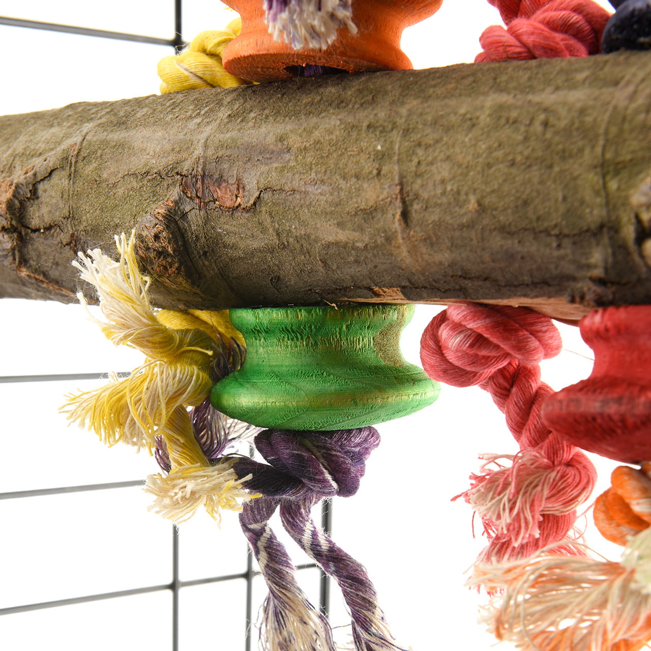 1. Mnoho prvků k objevování: Tyč je vybavena barevnými a bavlněnými prvky, které upoutají pozornost každého papouška. Vytvářejí zajímavé a rozmanité textury, které papouška vybízejí k prozkoumávání, kousání a manipulaci s nimi. Je to skvělý způsob, jak stimulovat smysly a udržet papouška mentálně aktivního.