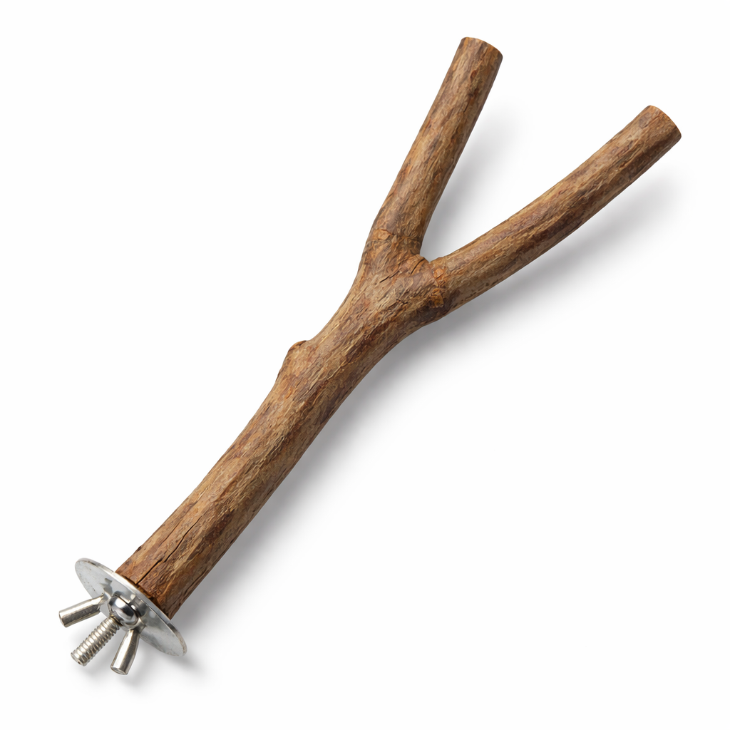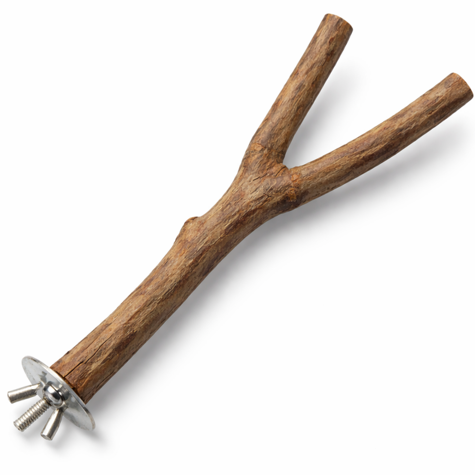 Pohodlná, přírodní, celodřevěná dvojitá tyč pro střední a velké papoušky.