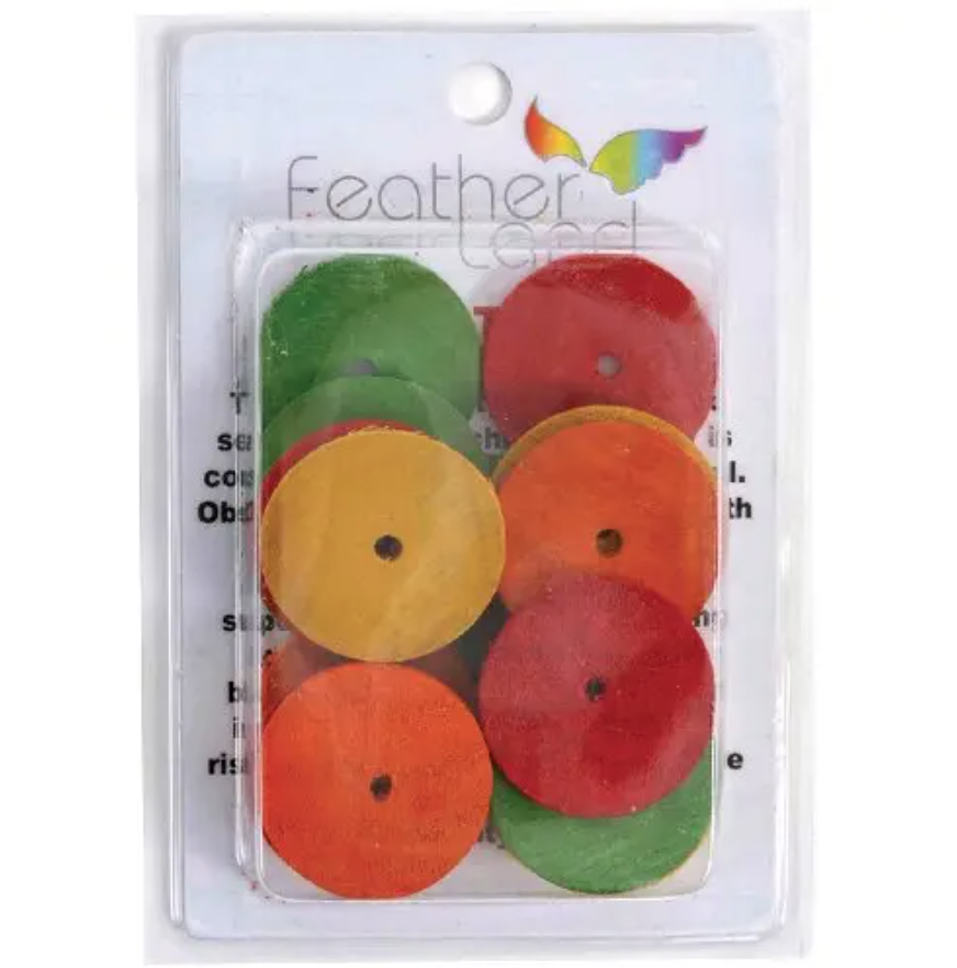 V jednom balení najdete až 20 dřevěných disků, což nabízí mnoho kreativních možností a zajišťuje dlouhodobou zábavu pro vašeho papouška.
