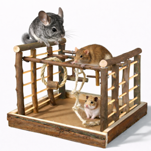 Dřevěné hřiště je stabilní, víceúrovňová konstrukce navržená pro malé a středně velké hlodavce, kteří potřebují pohyb, podněty a bezpečný prostor k objevování.