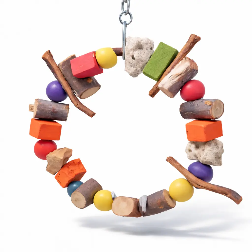 Dřevěný prsten s kameny Lava – hračka pro malé a střední papoušky