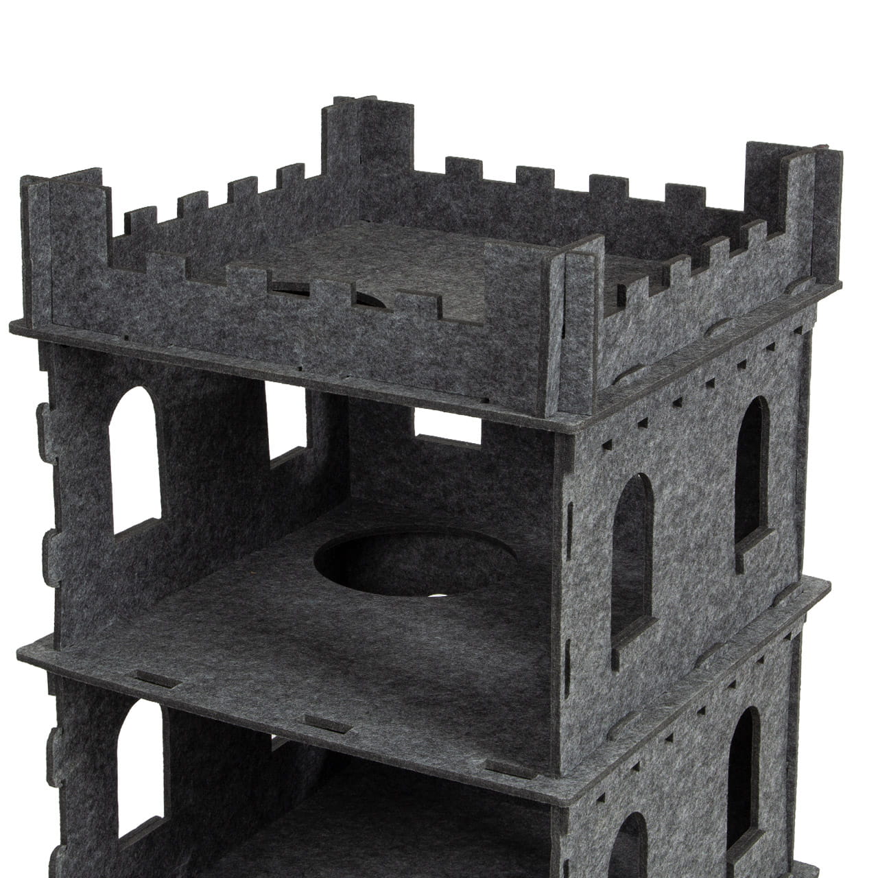 Felty Fort je impozantní kočičí hrad, který nabízí tři patra k prozkoumání pro vaši kočku. Každé patro má dostatek prostoru, aby si vaše kočka mohla hrát, skákat, škrábat a odpočívat. Díky různým úrovním a skrytým otvorům si váš kočka bude moci užít úplnou svobodu a prozkoumat každý kout hradu. Je to ideální řešení pro více koček, které rády hrají a schovávají se.