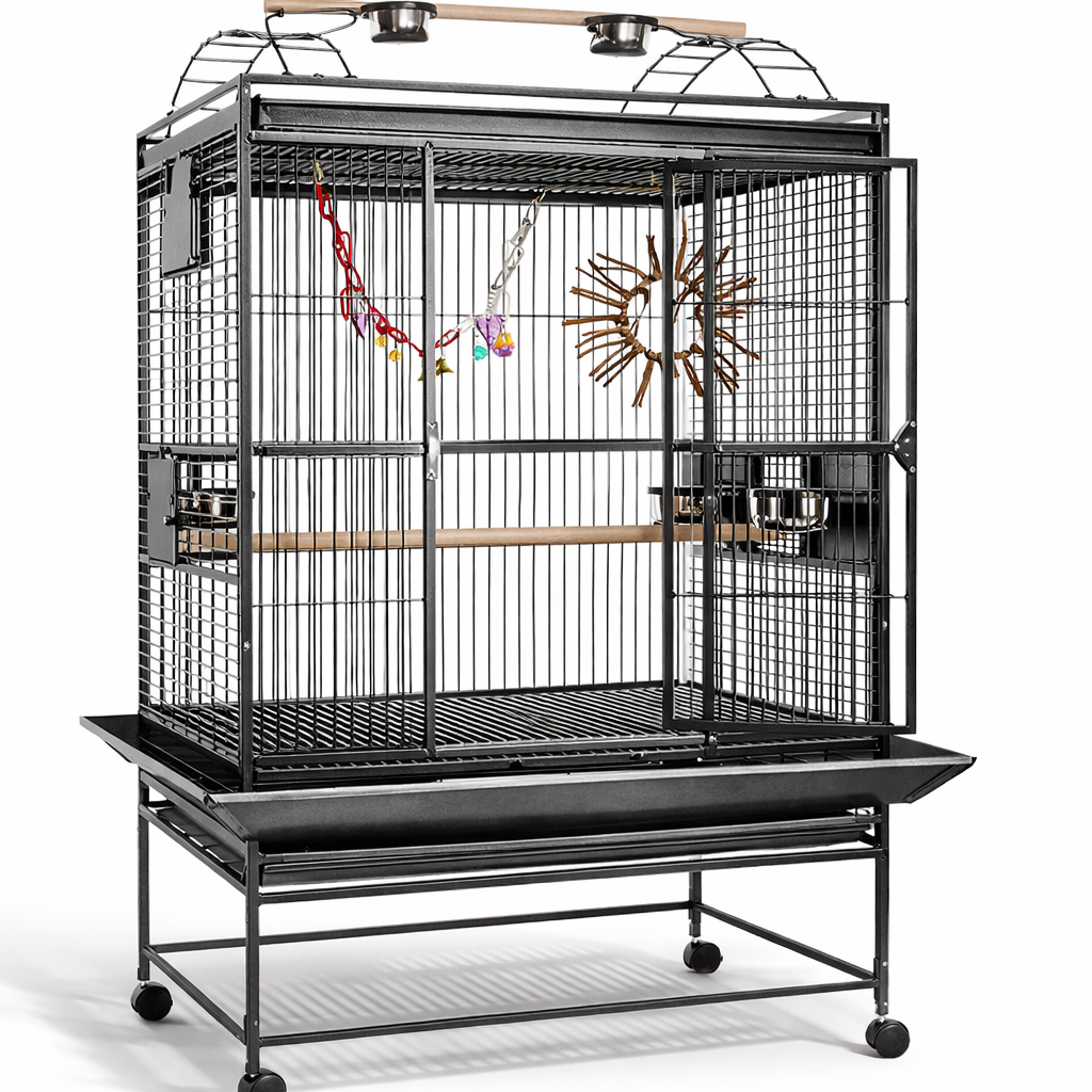 - Boční podnosy na sbírání semen pomáhají udržovat čistotu kolem klece.
