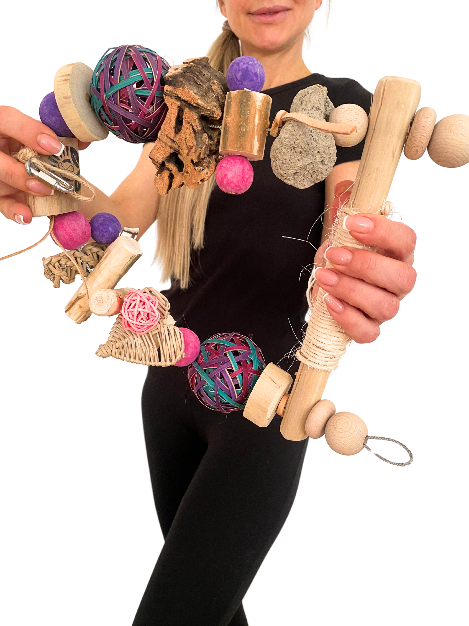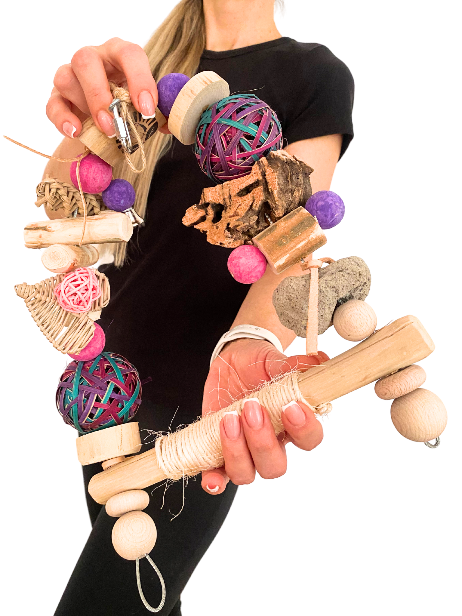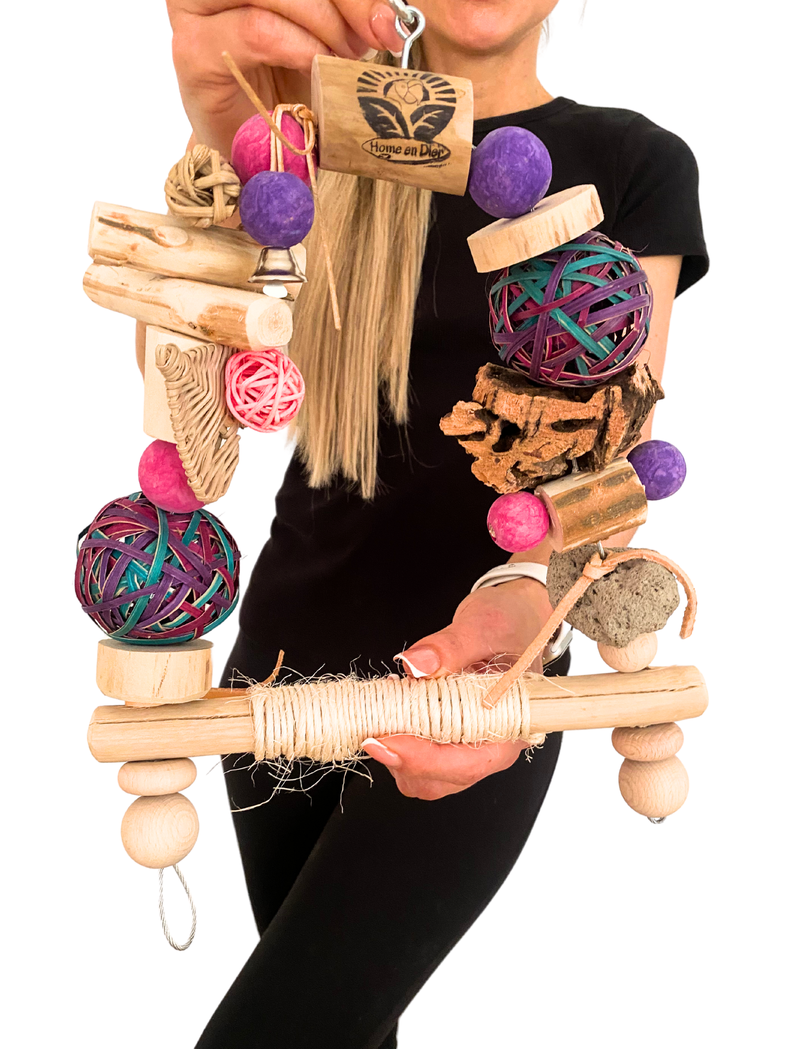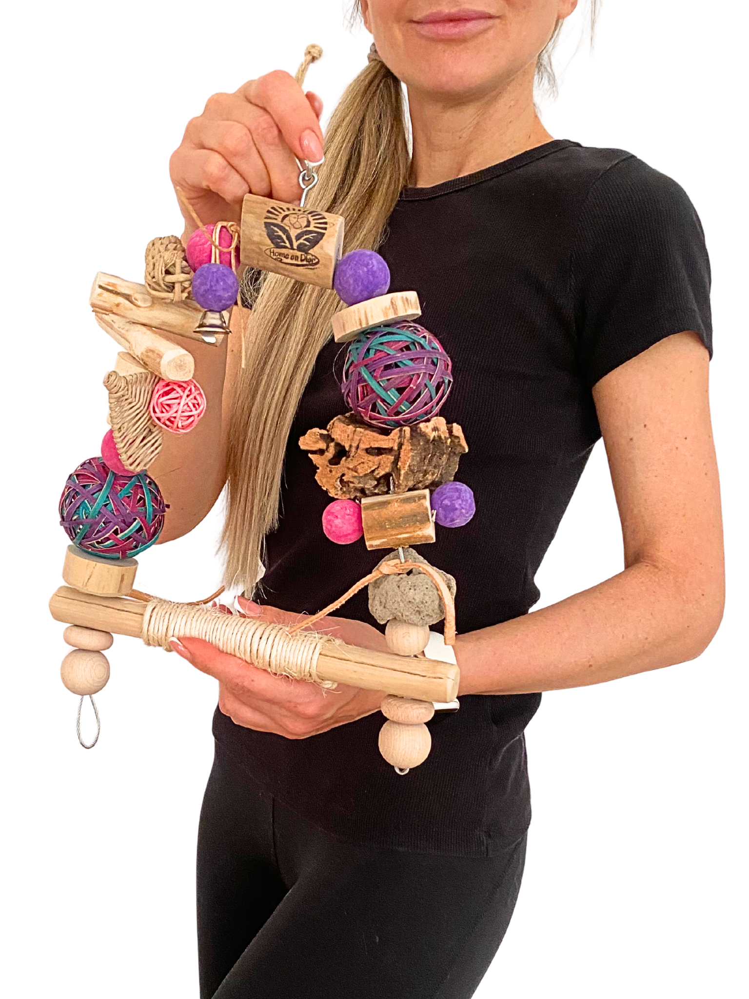 Geniální houpačka - Barevná hračka pro papoušky s javovým stromem, korkovým dubem a lávovými kameny