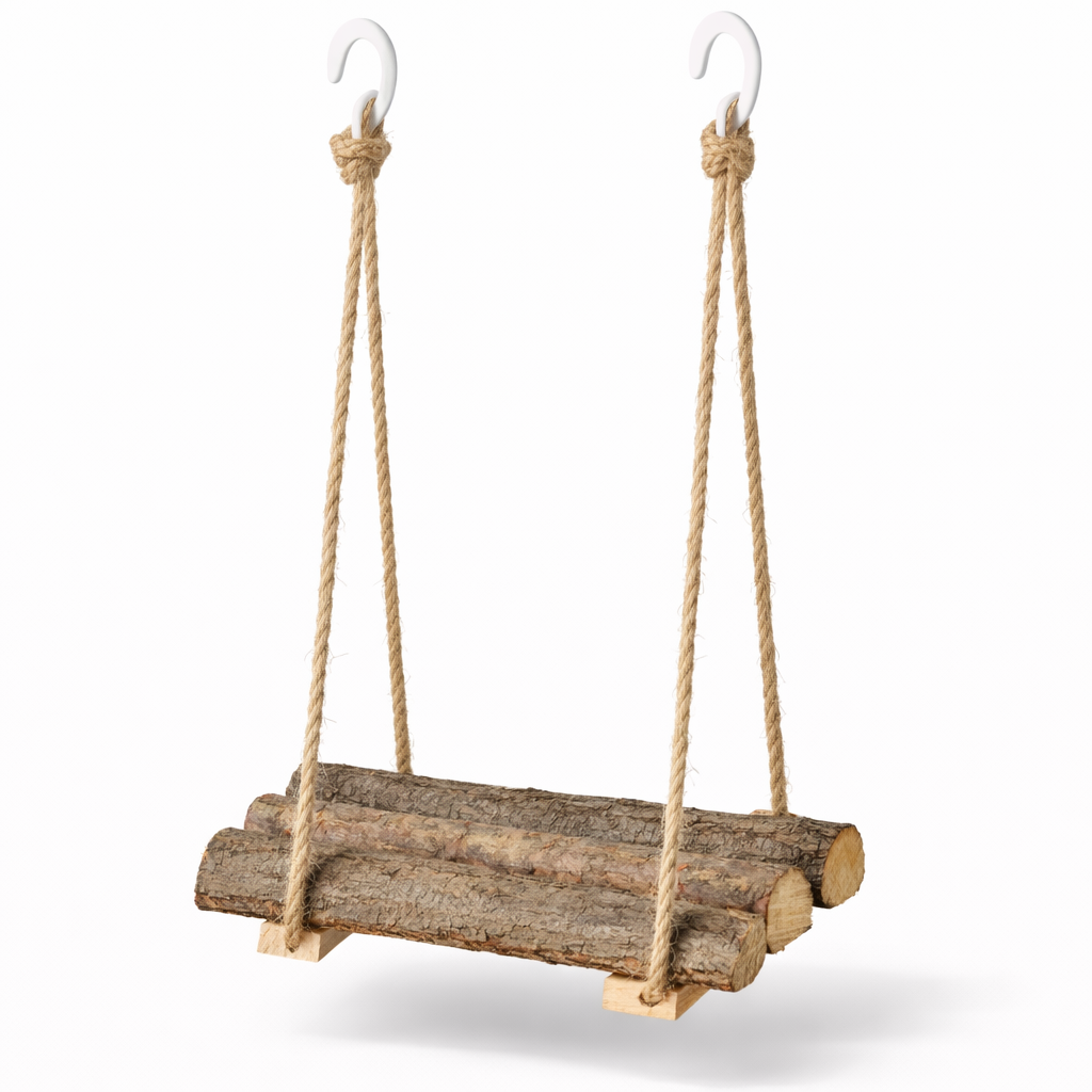 - Přírodní materiály: Houpačka Natura je vyrobena ze dřeva a jutového provazu – přírodních materiálů, které jsou bezpečné pro papoušky, odolné a pevné, takže houpačka vydrží mnoho let. Jutové lano je měkké a příjemné na dotek, takže se na něm papoušek může houpat bez obav z poranění.