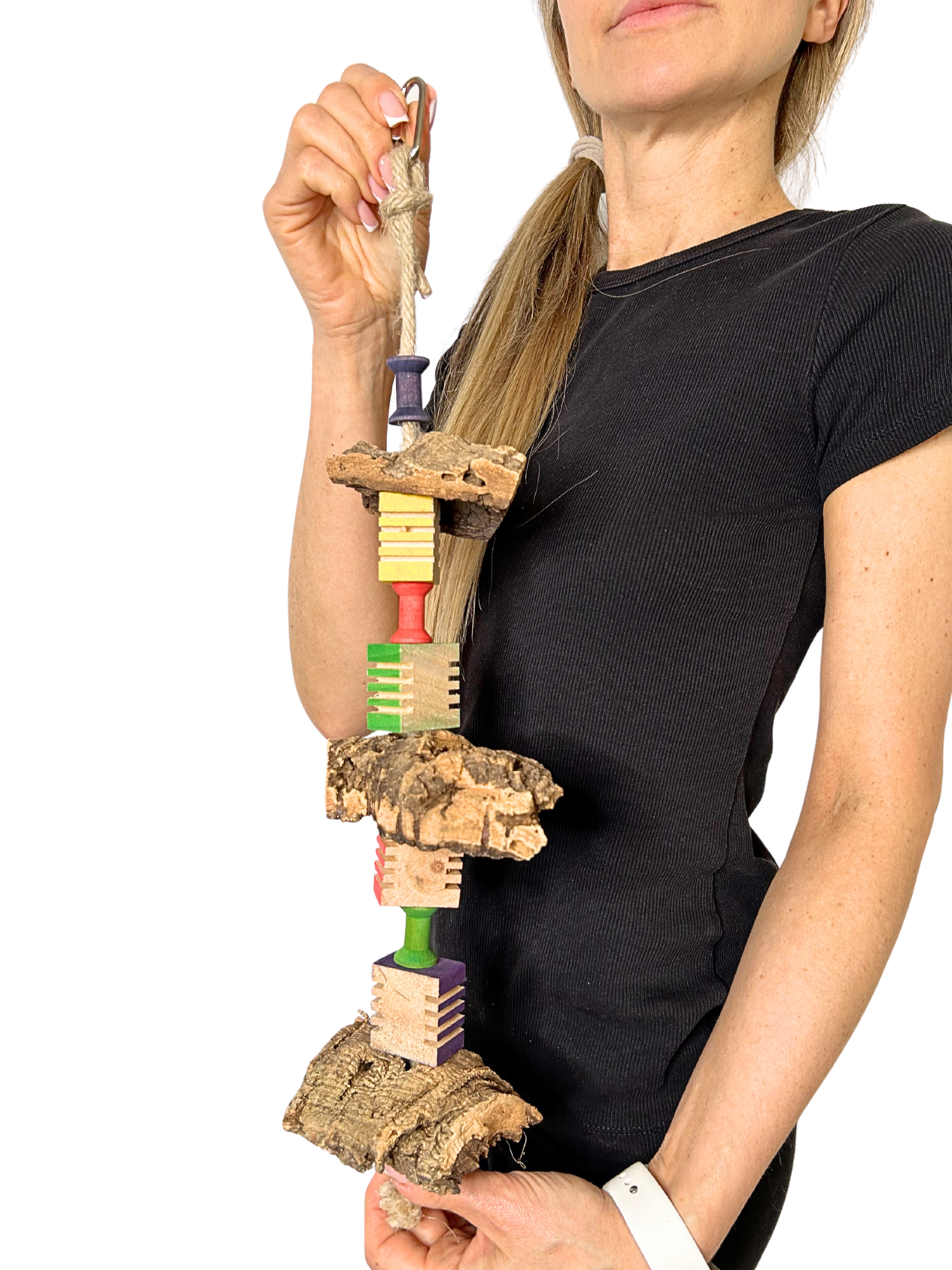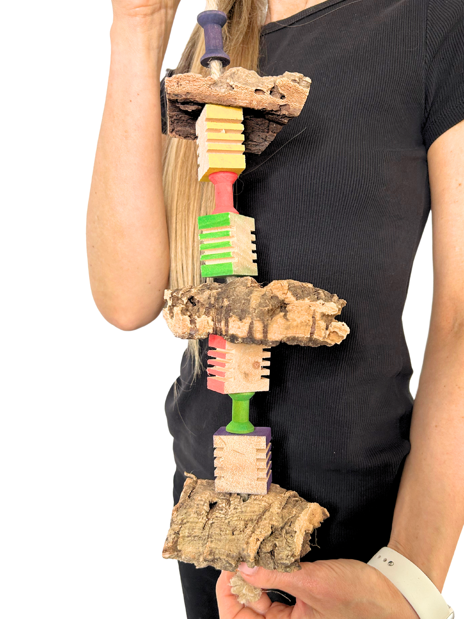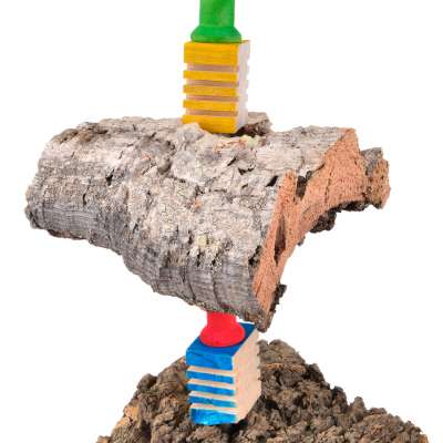 V naší hračce slouží korkový dub jako přírodní, zcela bezpečný materiál pro udržení zobáku v perfektním stavu.