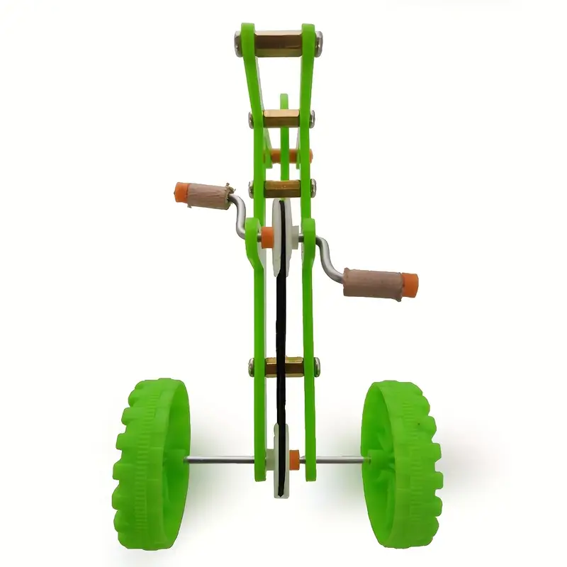 Papoušek šlape na speciálně navrženém kole a pohybuje se po rovné ploše. Mechanismus fungování je jednoduchý a bezpečný – a radost z jízdy obrovská! Ideální atrakce pro nimfy, vlnkované papoušky, konury, ale také amazony a jiné střední ptáky.