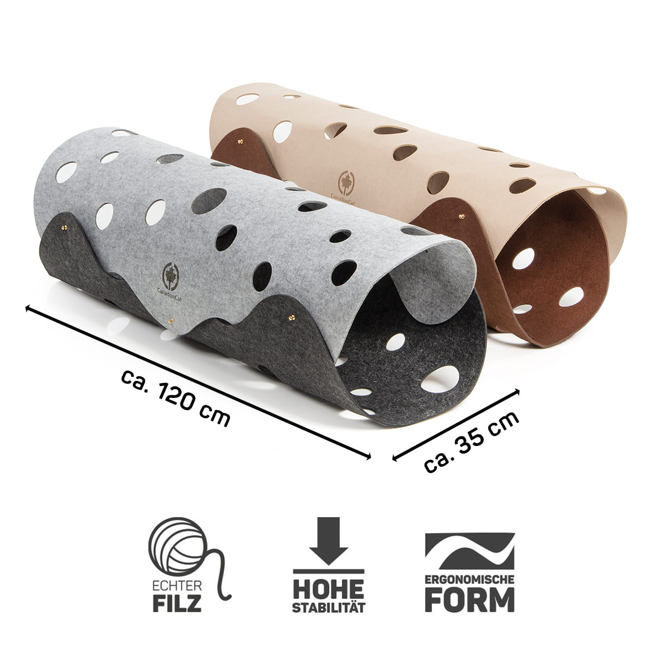 - Moderní dvoudílný tunel pro kočky vyrobený z příjemného filcu