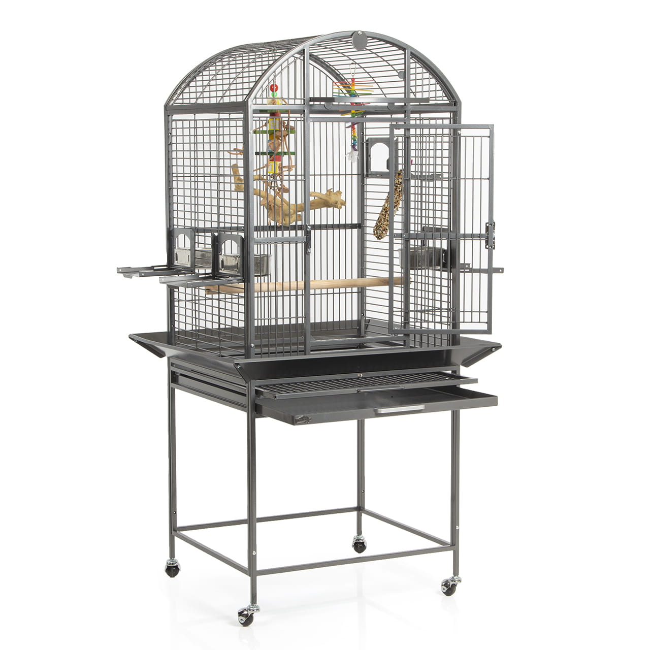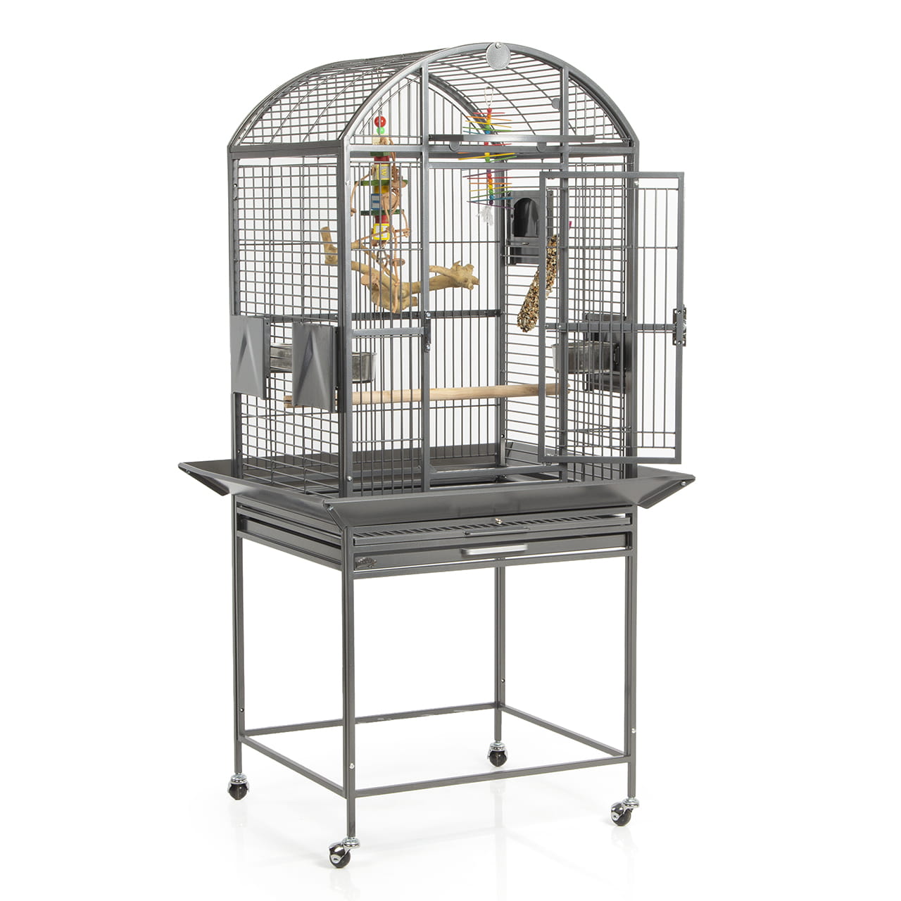 Klece pro papoušky Finca II Dome tmavá – klece pro střední a větší papoušky (papoušci šedí, amazoňané, kakadu, malé ary a podobné)