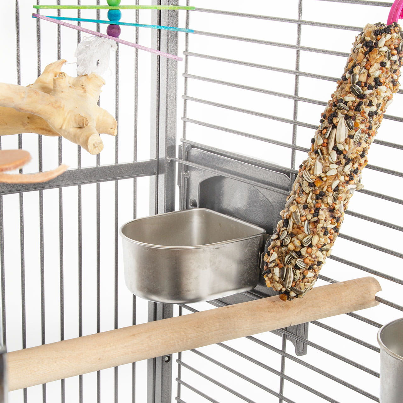 - Čtyři nerezové misky a tyč jsou dodávány spolu s klecí