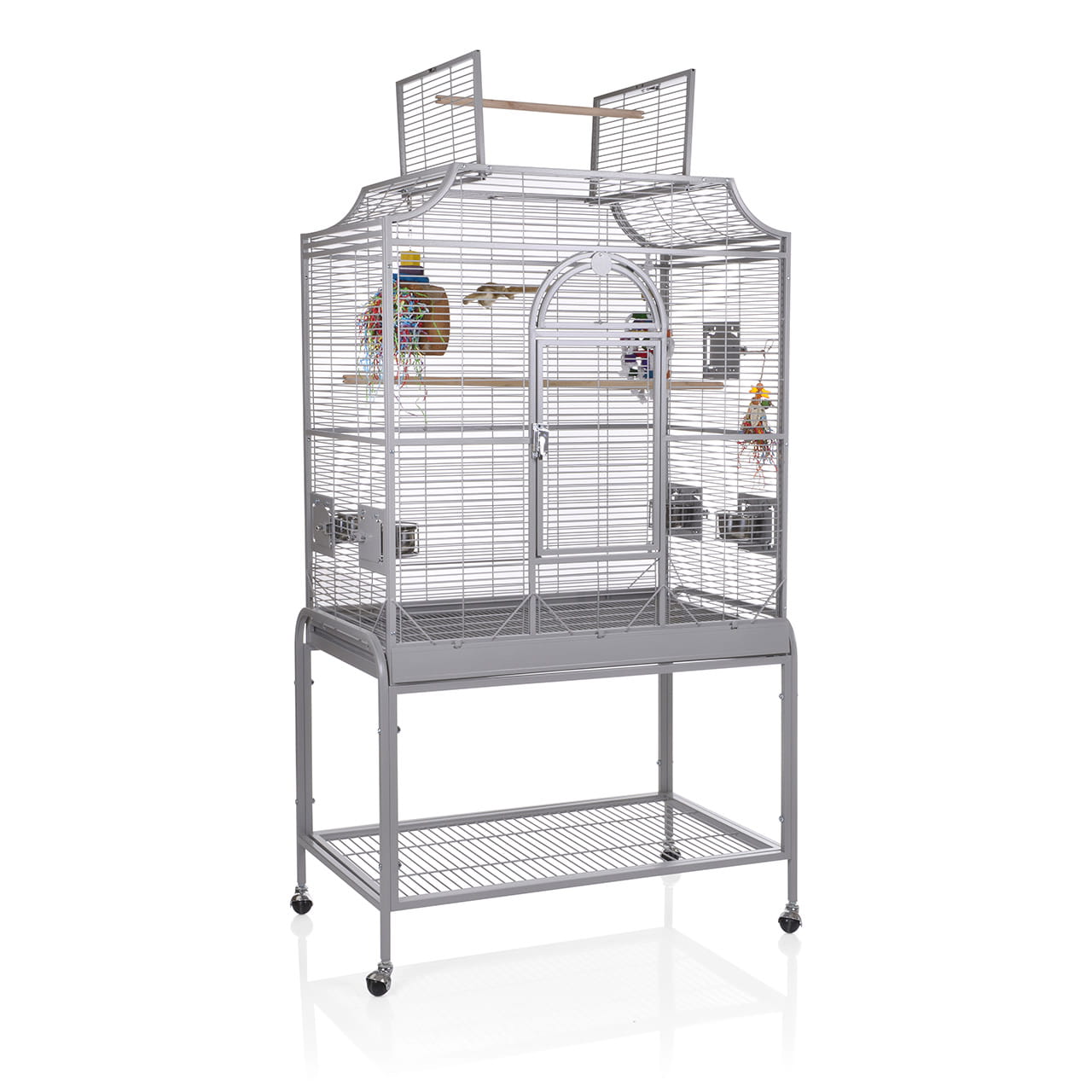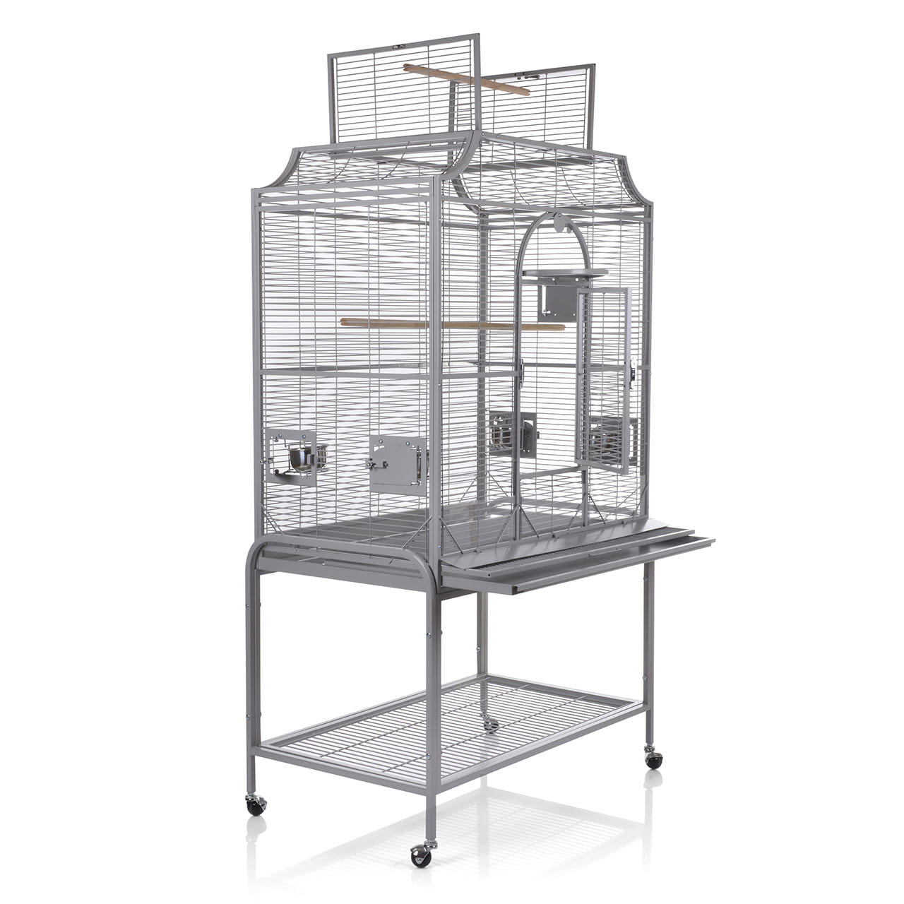 - Vozík s policí a čtyři nerezové misky jsou dodávány spolu s klecí