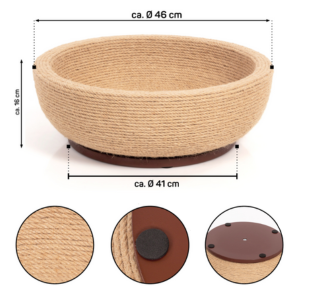Na jedné straně je pevná sisalová miska ideálním místem pro škrábání. Přírodní sisalový povrch nejen pomáhá při péči o drápky, ale také odvádí pozornost od jiných potenciálních předmětů, které by mohly být v domácnosti poškrábány. Nejedná se pouze o nábytek pro kočky, ale také o stylový prvek interiéru.
