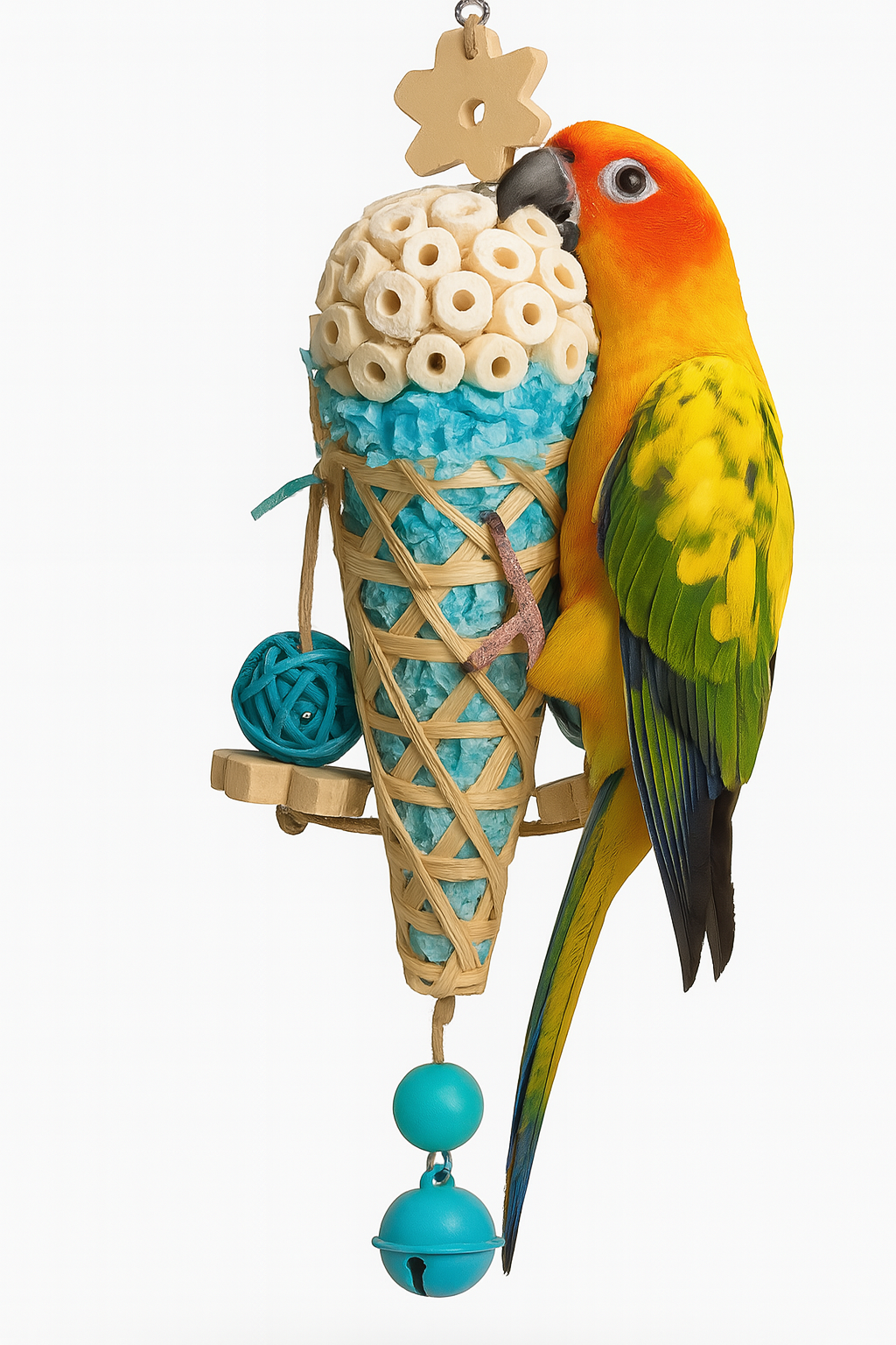 Kornout pro papoušky Hračka se zvonkem, květinami a míčky | Parrot Planet