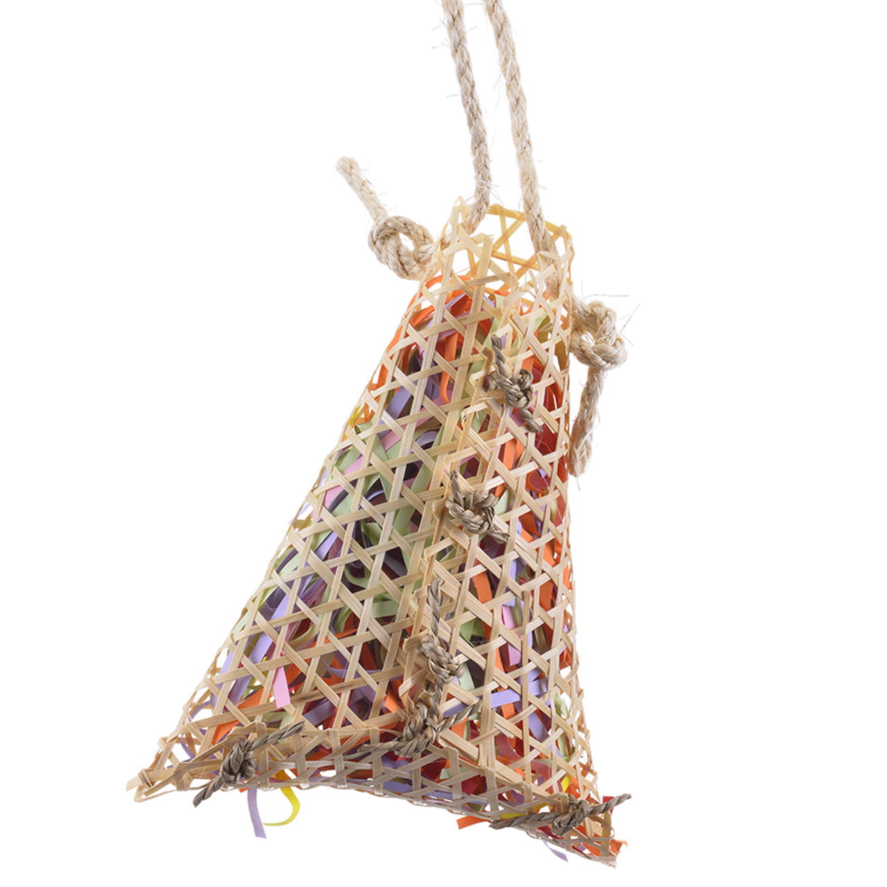 Koš je vyroben z kukuřičné rohože, díky čemuž je bezpečný a odolný pro vašeho opeřence. Uvnitř košíku jsou rozházené kousky papíru, které zajišťují rozmanitost a stimulaci při hraní. Váš pták bude moci tyto kousky okusovat, trhat a hrát si s nimi, což zabrání nudě a stimuluje přirozené chování.