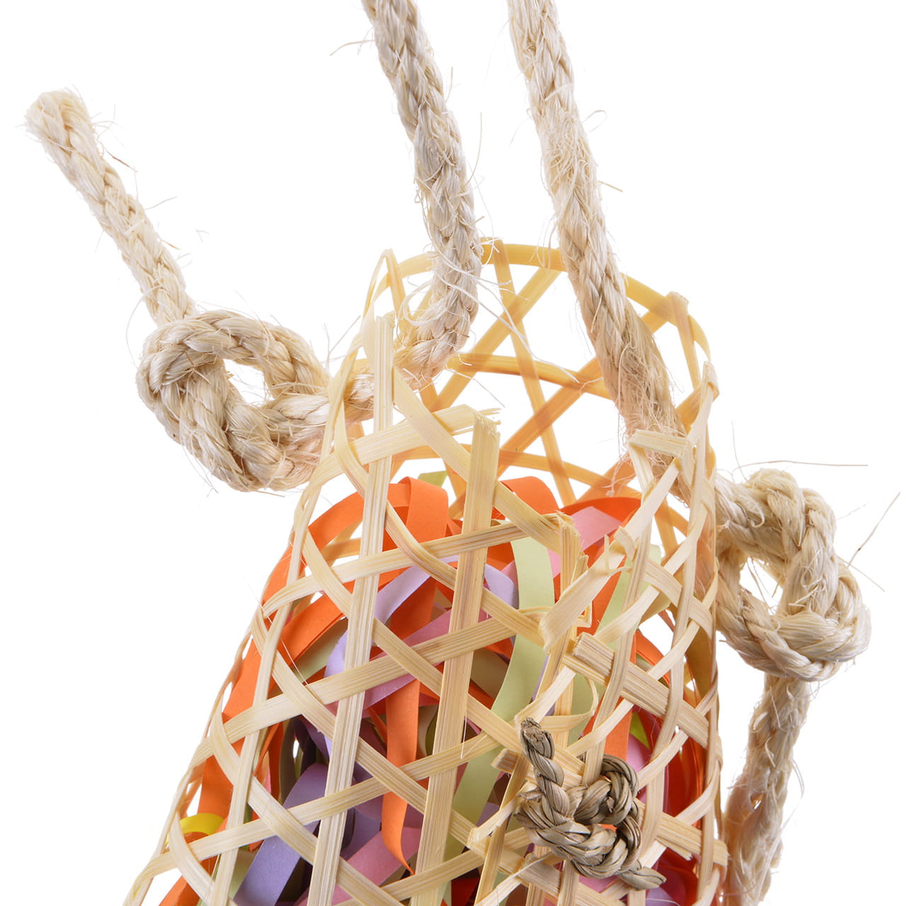 Hračka má celkovou délku přibližně 40 x 18 cm, což ji činí vhodnou jak pro velké, tak pro malé papoušky. Váš pták bude mít uvnitř košíku spoustu místa k prozkoumávání a hraní.