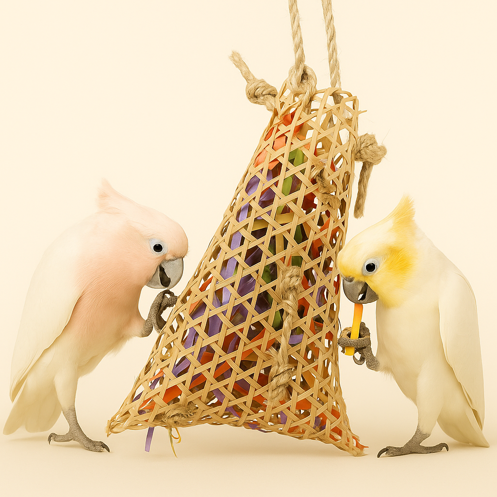 Košík s papíry doporučujeme pro všechny papoušky. Je to hračka, která jim zajistí mnoho hodin zábavy, stimuluje jejich mysl a zabrání nudě.