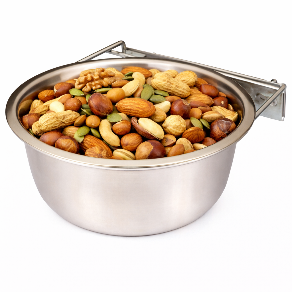 Ideální pro každodenní podávání krmiva nebo vody. Vybavená vyjímatelnou vložkou z nerezové oceli – stačí ji vyjmout, umýt a hotovo. Miska je navíc připevněna k tyčím klece pomocí knoflíku ve tvaru květu – stabilně a bez posouvání.