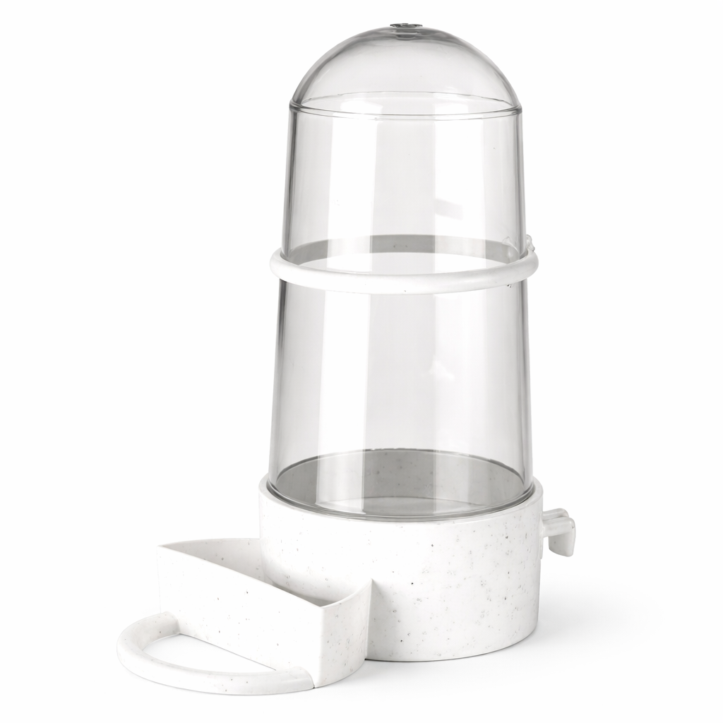 Představujeme praktický a hygienický produkt, který zajišťuje pohodlí jak vám, tak vašemu ptákovi. Díky němu je udržování čistoty v kleci a jejím okolí snazší než kdykoli předtím. Průhledná horní část krmítka/napáječky umožňuje kontrolovat množství a kvalitu dodávaného krmiva nebo vody a průhledná nádržka umožňuje sledovat množství krmiva, které pták spotřebuje.