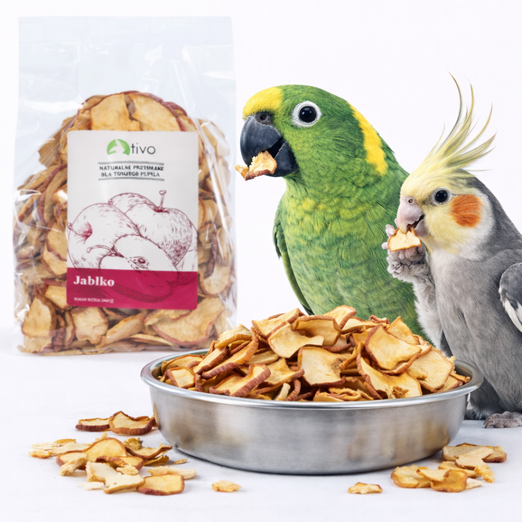 Jablko je ideální barevnou přísadou, která zpestří stravu každého papouška!