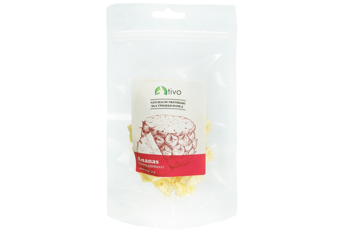 Díky křupavé formě představuje ananas atraktivní zpestření stravy i odměnu. Vzhledem k přirozenému obsahu cukrů by měl být produkt podáván pouze příležitostně jako pamlsek.