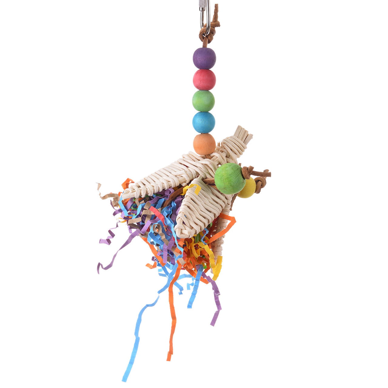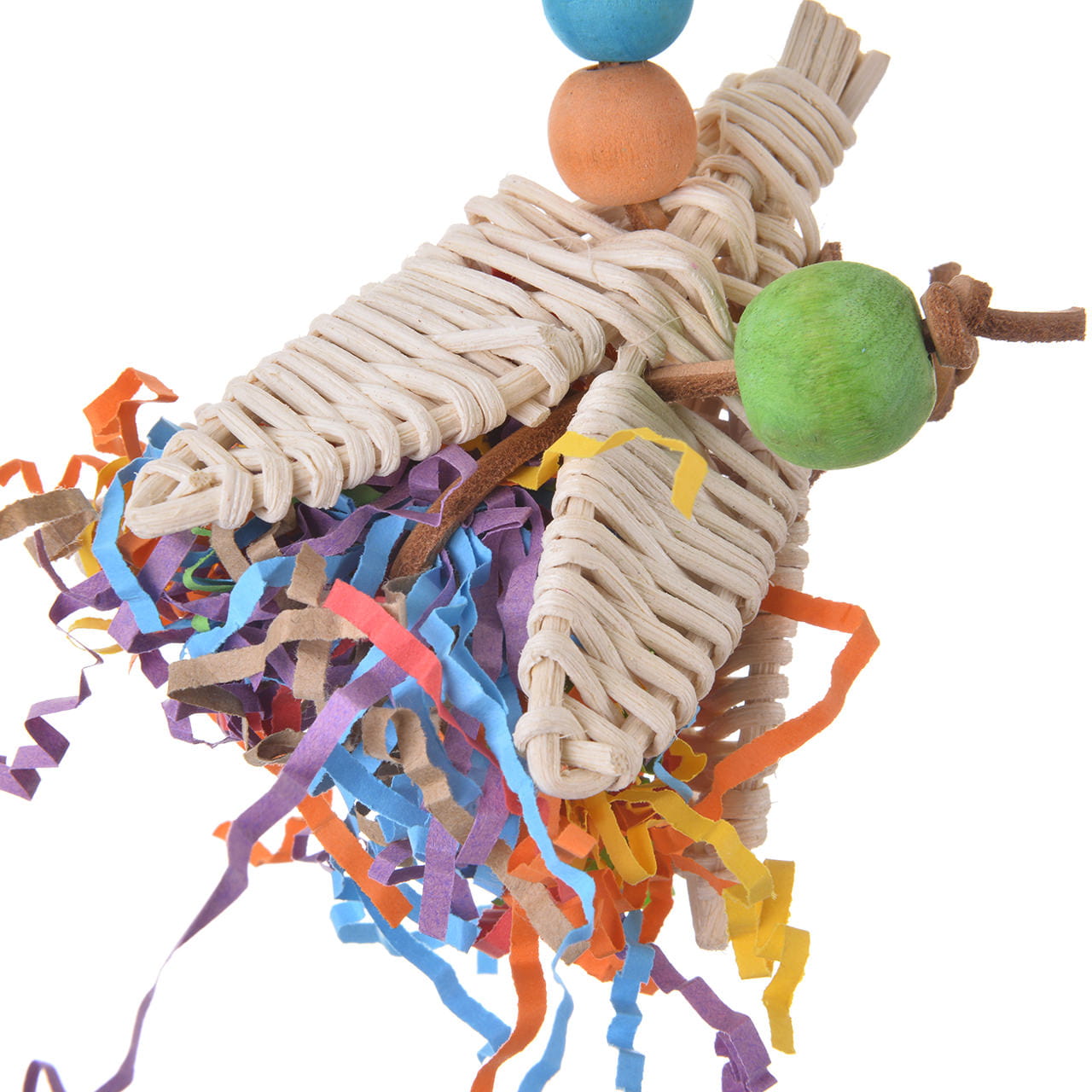 Podpora hry: Pásky papíru a malá ratanová koule uvnitř květu povzbuzují papouška k prozkoumávání a objevování, což stimuluje jeho zvědavost a aktivitu.
