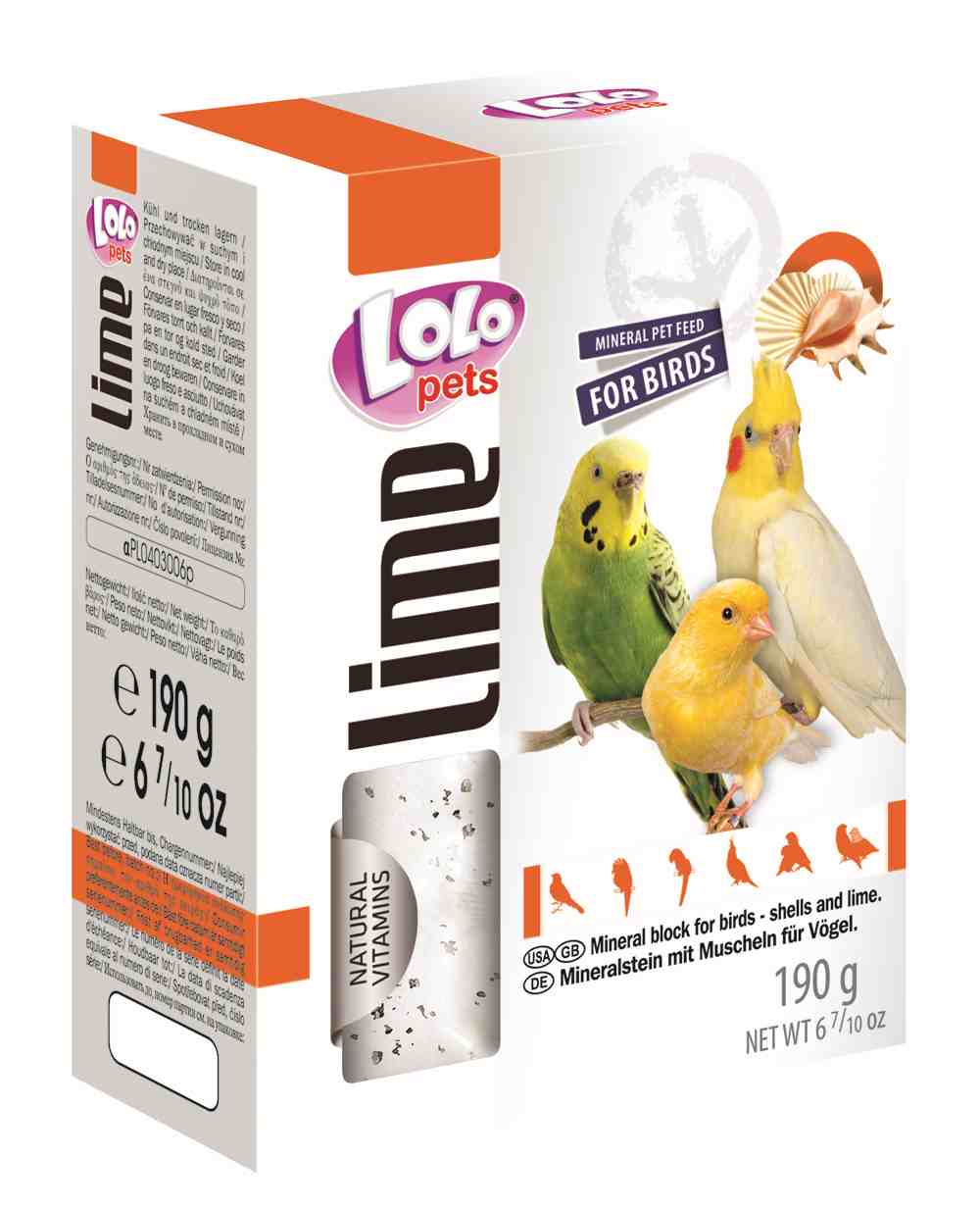 LOLO PETS LIME - Vápenný kostka s mušlemi ústřic XXL vápenný - pro papoušky 190g