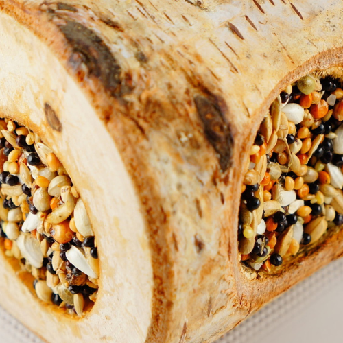 Mini pařez se semínky , přírodní dřevěná pochoutka, naplněná těmi nejlepšími semínky.