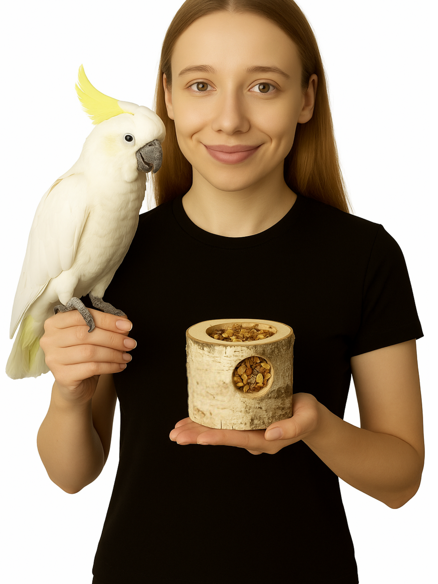 Může sloužit jak jako hračka do tlapky, tak po předchozím upevnění v kleci jako závěsná miska, kterou můžeme neustále doplňovat novými pamlsky!