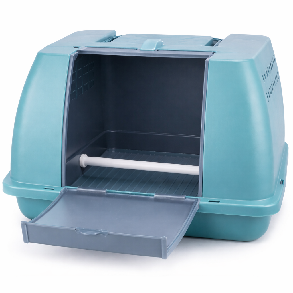 Snadné otevírání a zavírání: Modrá přepravka se snadno otevírá a zavírá, což usnadňuje vkládání a vyjímání vašeho mazlíčka. Pevné uzávěry zajišťují, že přepravka zůstane během cesty uzavřená, čímž se eliminuje riziko náhodného otevření.