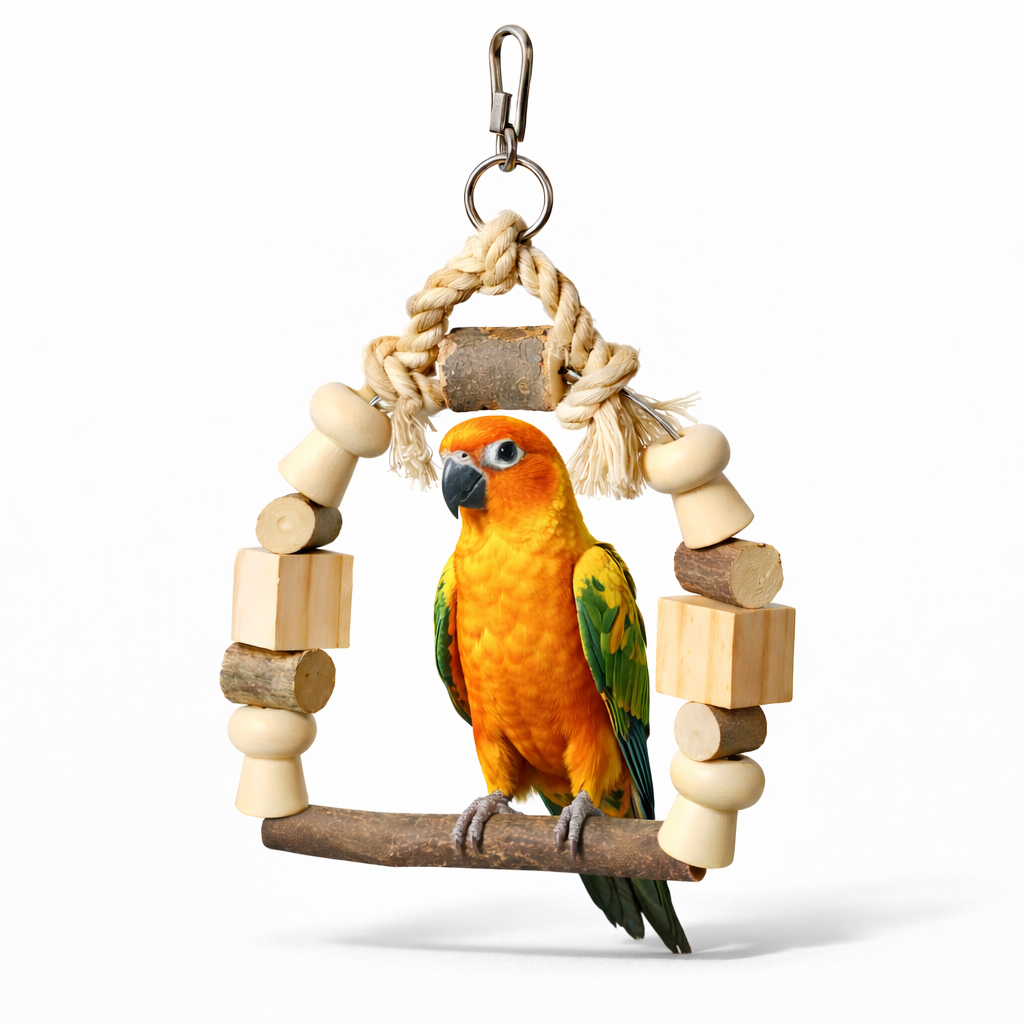 Duhová houpačka je ideálním místem pro hraní a odpočinek malých a středních papoušků, jako jsou nimfy nebo vlnkované papoušky.