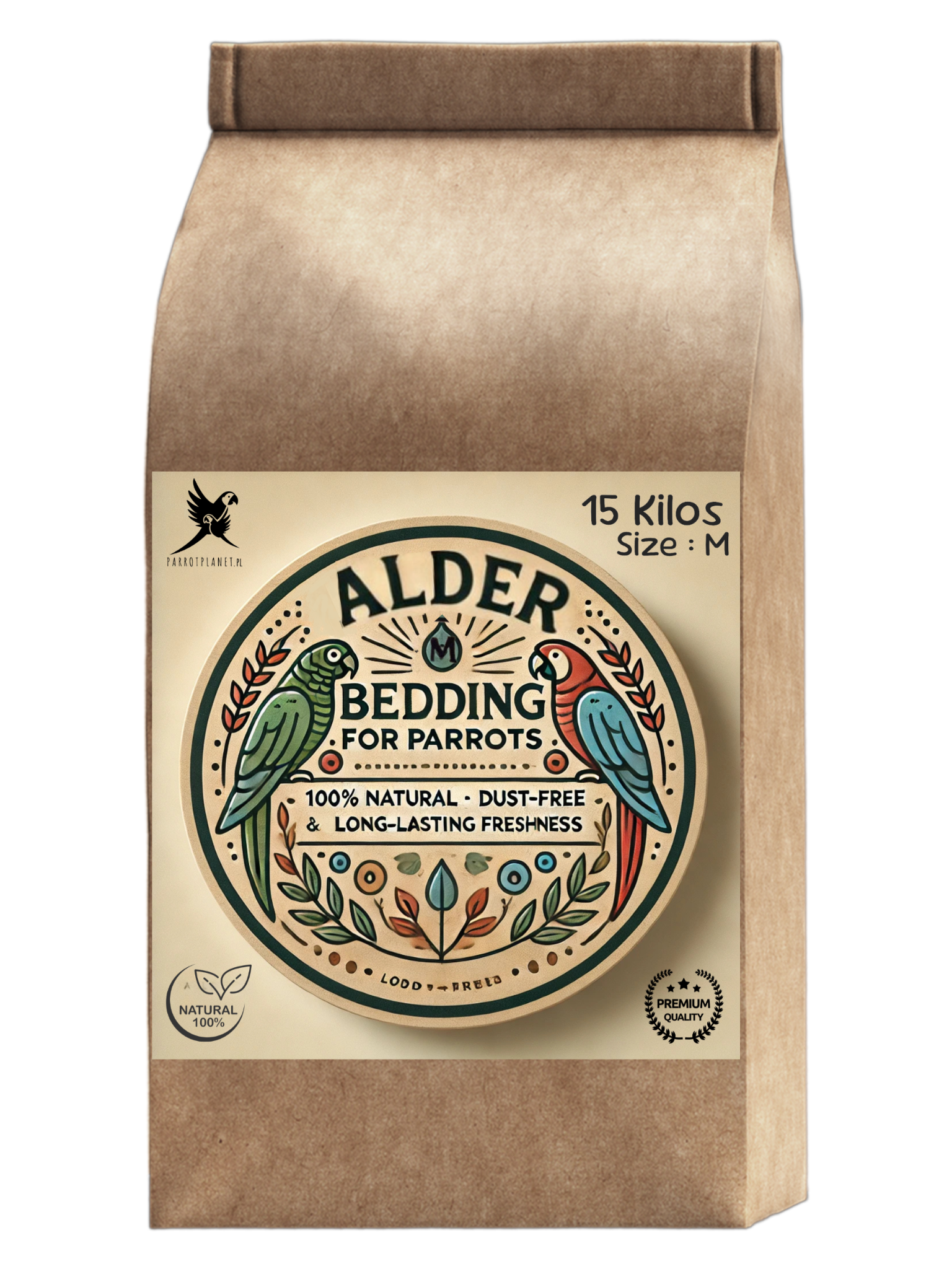 Olšové štěpky, velikost M – přírodní podestýlka pro papoušky, 15 kg