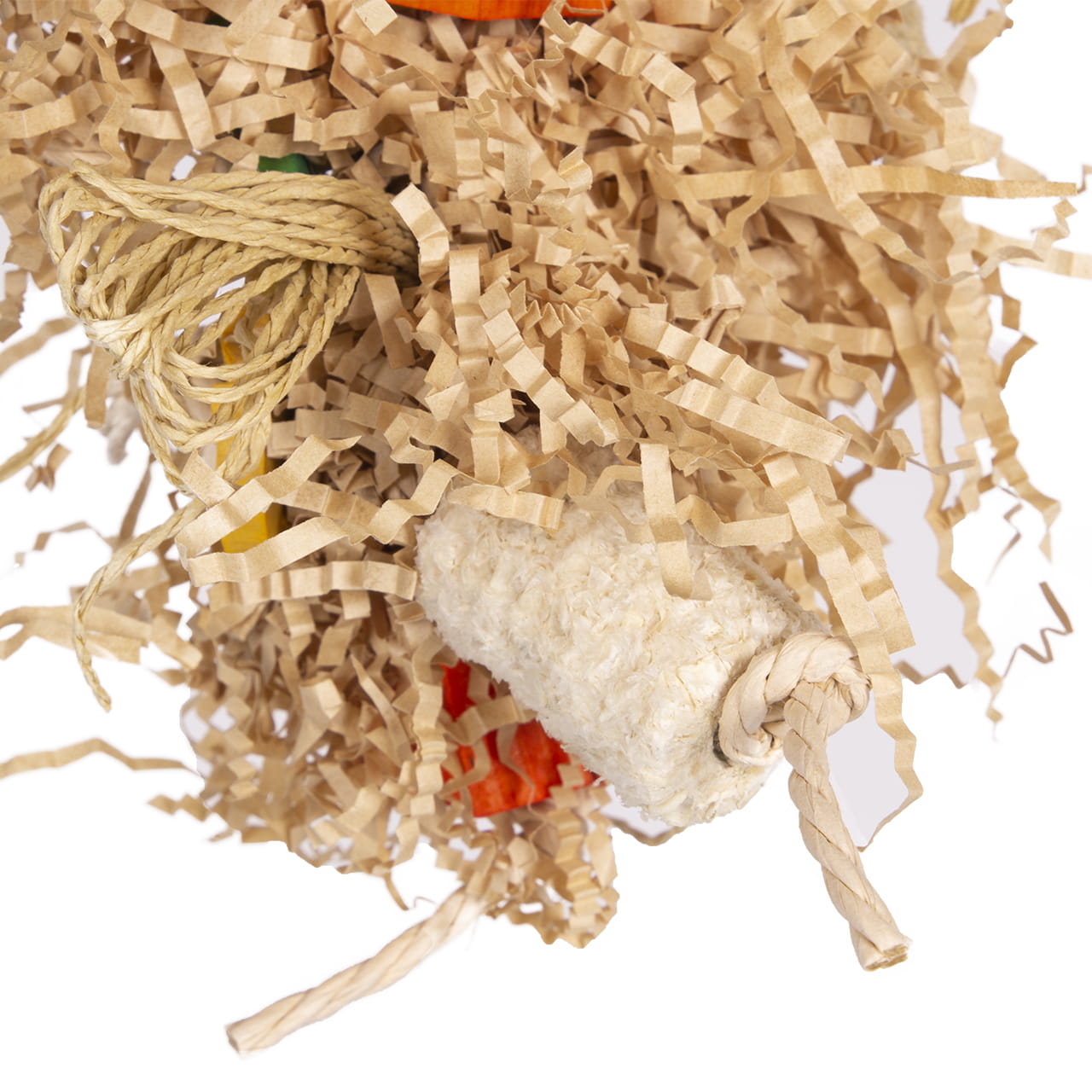 5. Velký význam hraček pro papoušky: Hračky jsou klíčové pro zdraví a pohodu vašeho papouška. Orange Shredder vašemu ptákovi nejen poskytuje zábavu, ale také mu pomáhá udržet si zdravou aktivitu a štěstí v kleci.