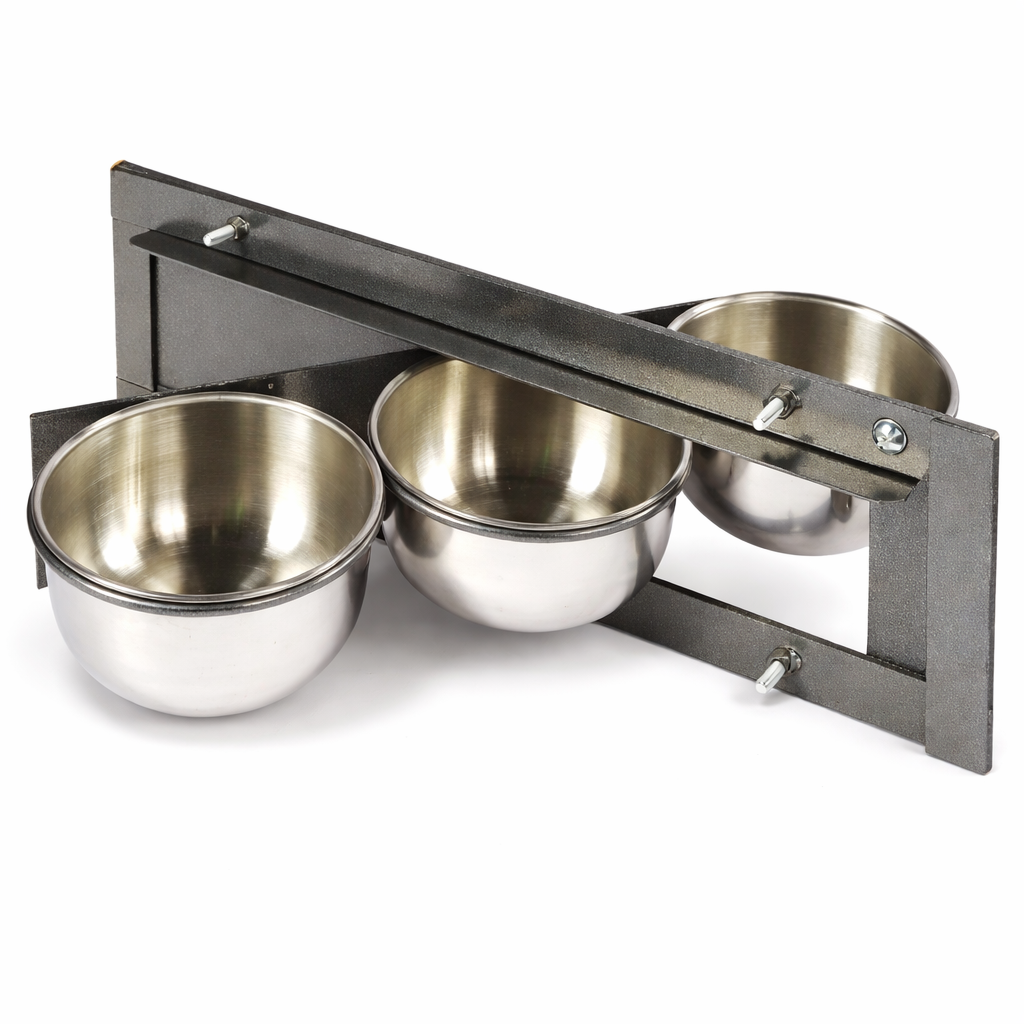 Otočný držák z nerezové oceli M je praktické a odolné příslušenství, které umožňuje pohodlné a hygienické podávání krmiva ve voliéře. Konstrukce umožňuje snadné otáčení misek ven a dovnitř, což usnadňuje doplňování potravy bez nutnosti sahat do klece.