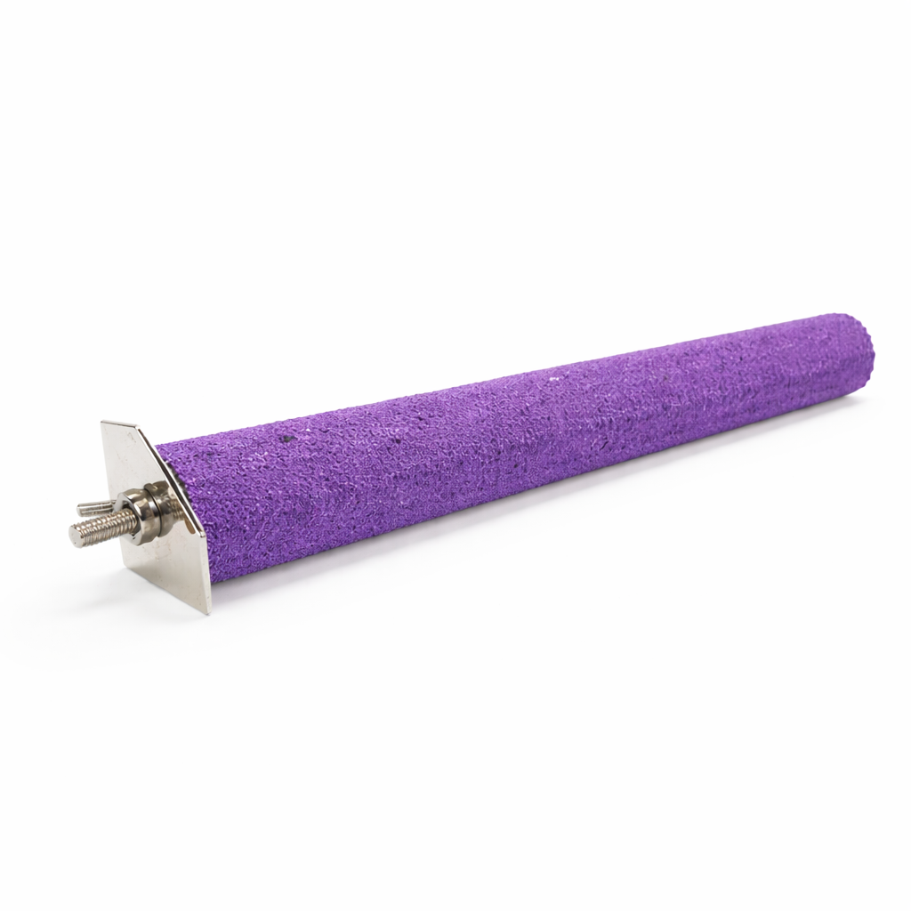 Pemzové bidýlko funguje nejlépe jako jedno z několika bidýlek v kleci. Kombinace různých materiálů a průměrů pomáhá udržovat zdravou kondici nohou papouška.