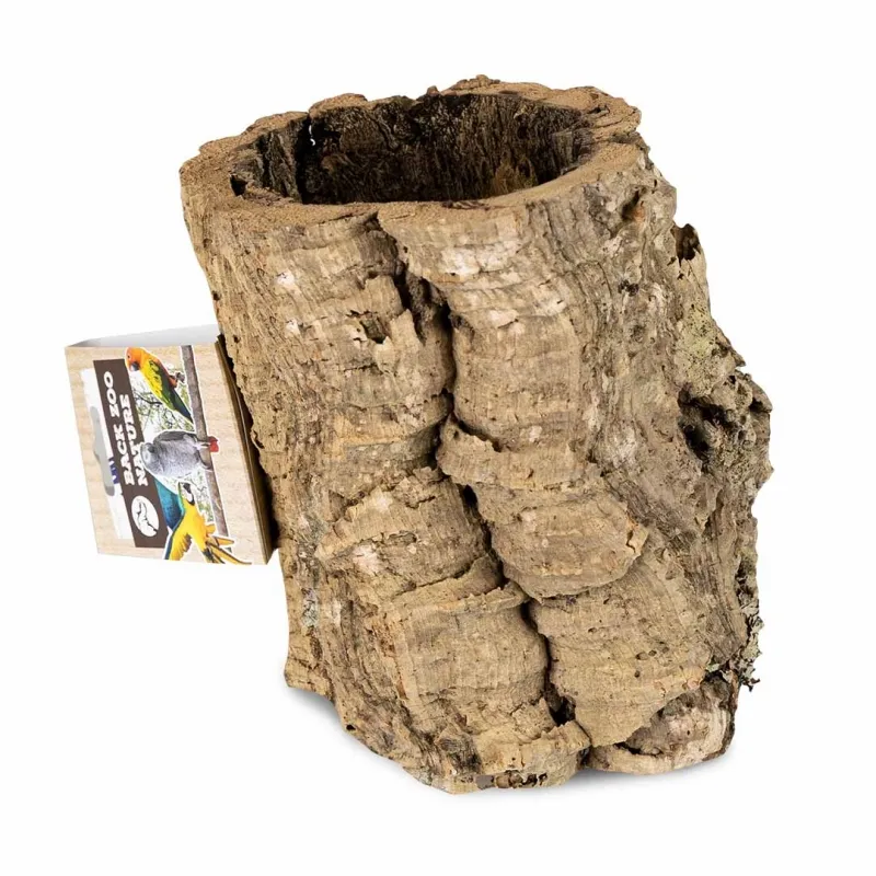 Přírodní úkryt a zábava: Přírodní bidélko nebo jeskyně vyrobená z kůry korkového dubu je ideálním místem pro odpočinek a zábavu středně velkých papoušků, protože jim nabízí přirozené a bezpečné prostředí.