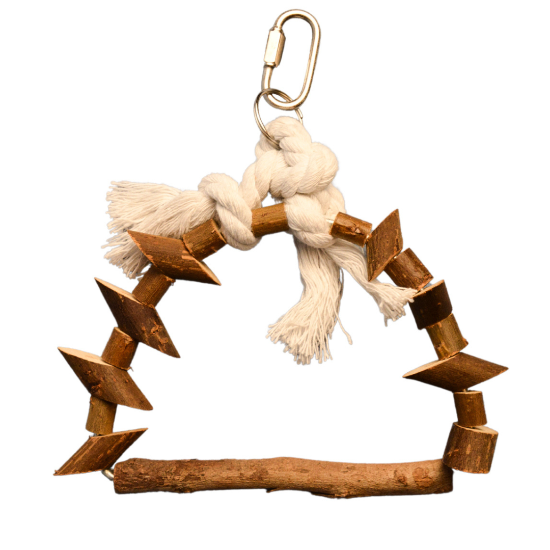 Přírodní dřevěná radost – houpačka pro malé a střední papoušky