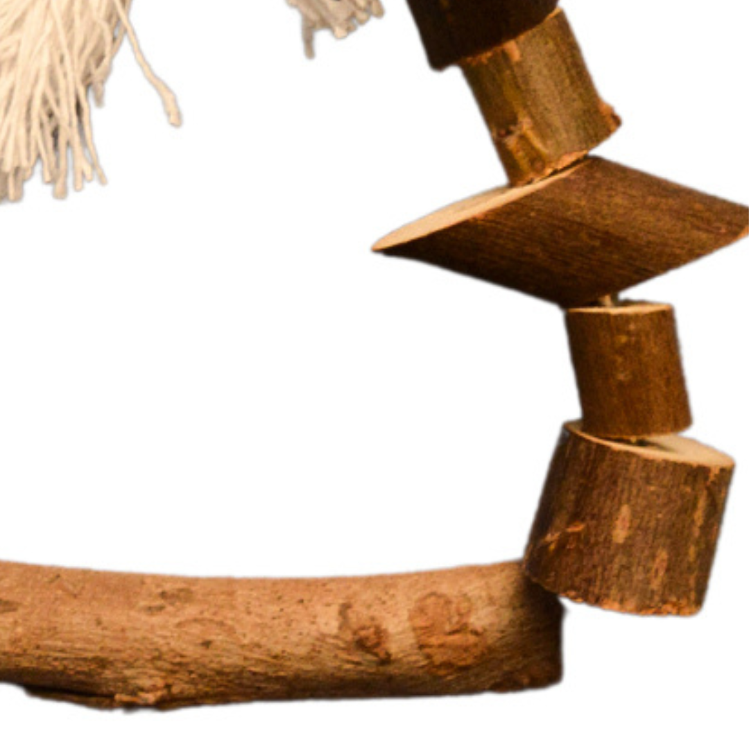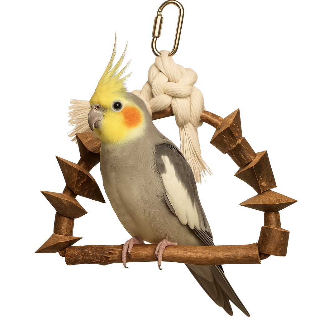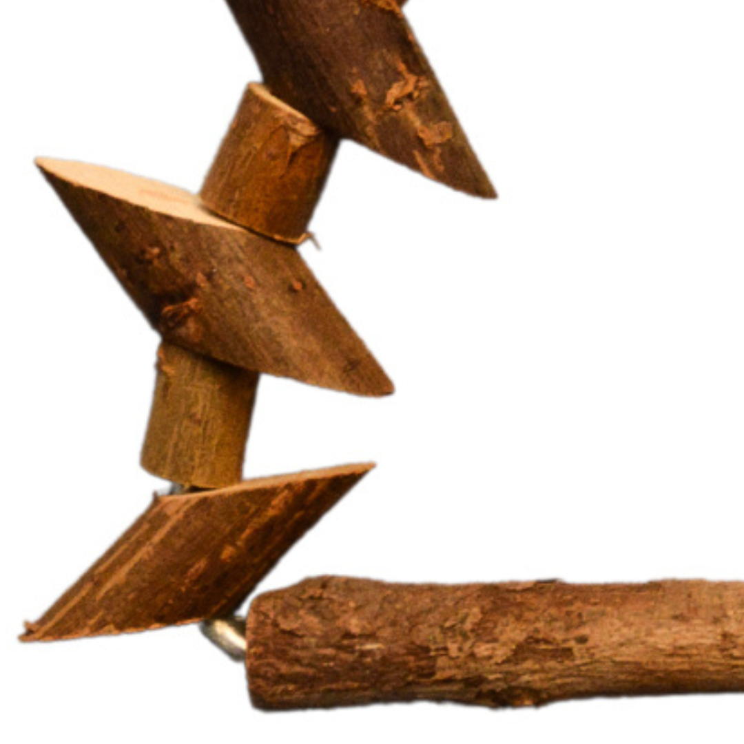 Naturalna Dřevěná Radost je trojúhelníková houpačka navržená s ohledem na každodenní pohyb, balancování a odpočinek papouška.