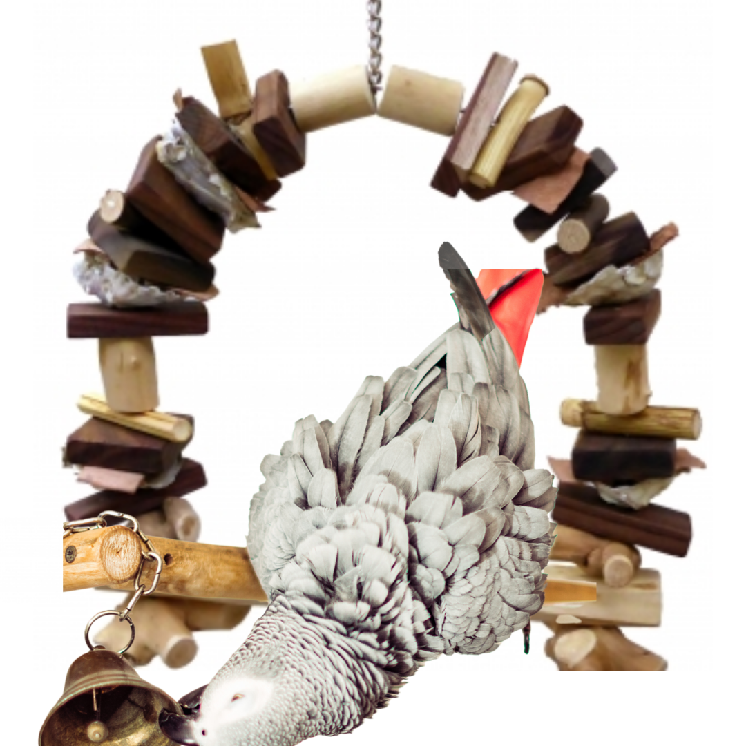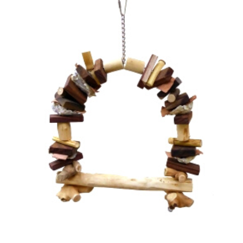 Přírodní materiály: Naše houpačka je vyrobena z přírodních materiálů, jako je jávské dřevo, mušle a kůže. To znamená, že váš papoušek bude v kontaktu s bezpečnými a přátelskými materiály, které nepředstavují žádné riziko pro jeho zdraví.