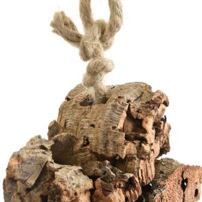V této hračce plní korkový dub roli přírodního a zcela bezpečného materiálu, který pomáhá udržovat papouškovi zobák v perfektním stavu. Papoušek bude mít možnost si hrát a procvičovat zobák, což je důležité pro jeho zdraví a zachování přirozeného chování.
