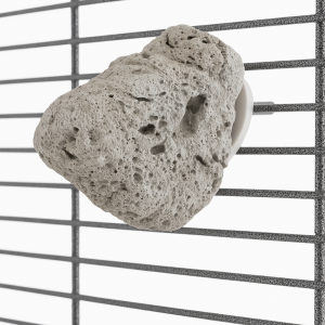 Lávový kámen navíc dodává papouškům cenné minerály, které jsou důležitou součástí jejich stravy. Díky jednoduchému systému upevnění na motýlkovou matici lze kámen bezpečně a stabilně připevnit k mřížce klece, což papouškům umožňuje jej používat kdykoli.
